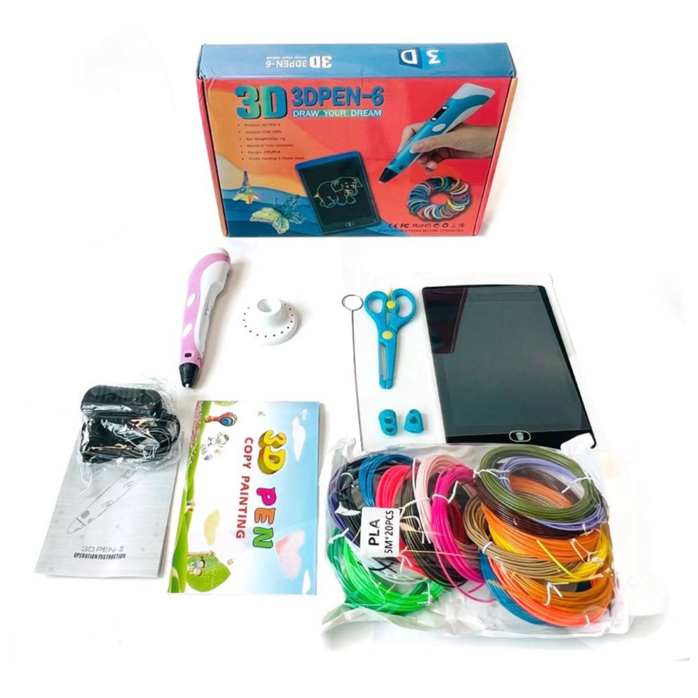 3D Pen-6 Большой набор для творчества 3Д ручка c LCD дисплеем, графический планшет, 100 м пластика и трафареты в комплекте