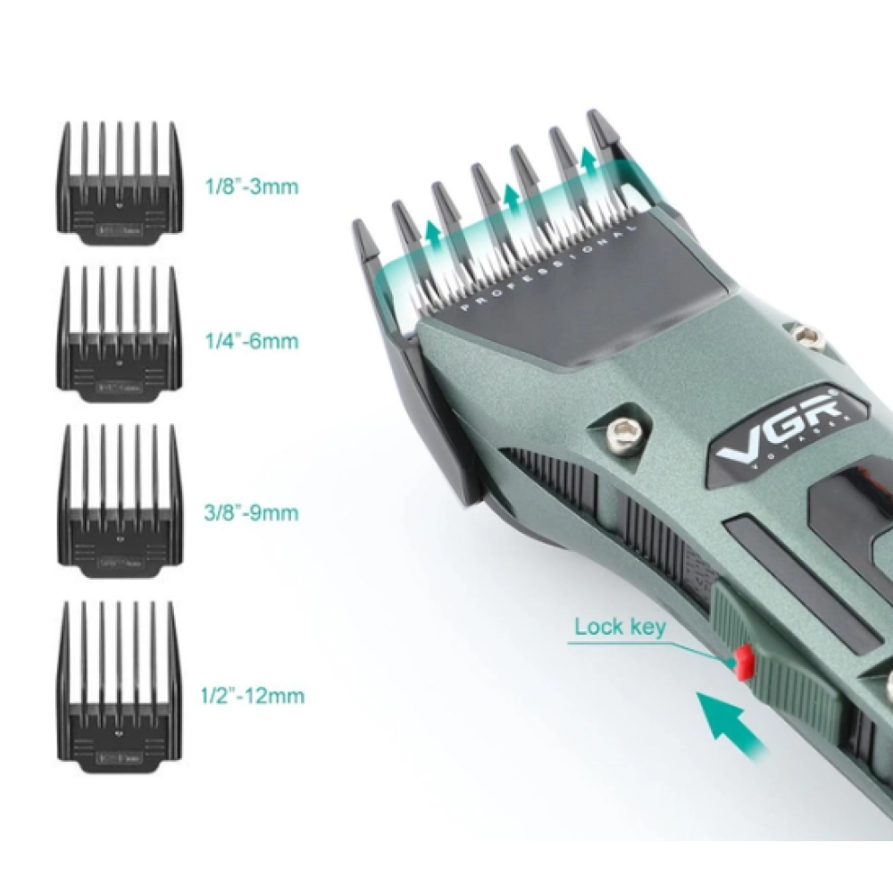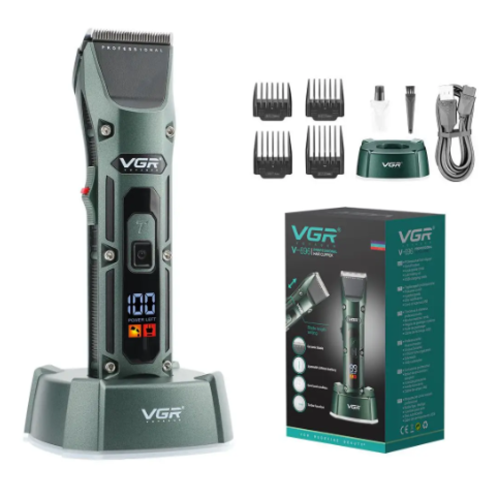 Аккумуляторная машинка для стрижки VGR V-696 с насадками и LCD дисплеем · Беспроводной триммер с зарядной док-станцией · USB зарядка
