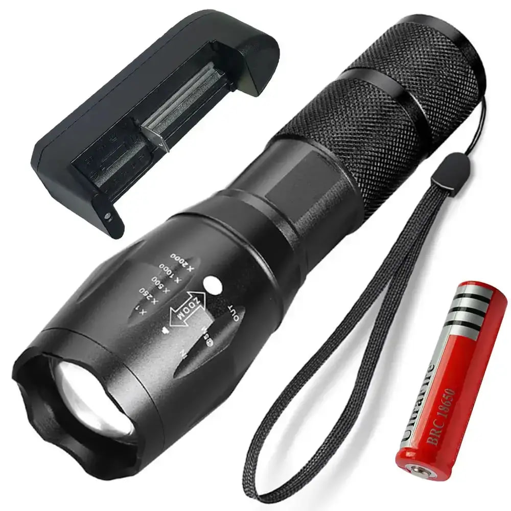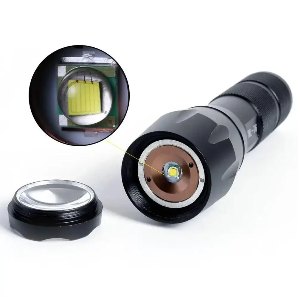 Благодаря светодиоду T6 и световому потоку 2000 люмен, фонарь предоставляет мощный и стабильный свет. Несколько режимов работы — максимальный, средний, экономичный, стробоскоп и SOS — позволяют адаптировать свет под любую ситуацию. Аккумулятор емкостью 6800 мАч заряжается от сети, обеспечивая длительное время работы и быструю подзарядку. Прочный алюминиевый корпус защищает от воды, пыли и механических повреждений.