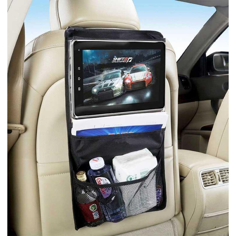 Для автомобилистов, применяющих свой автомобиль в качестве семейного, и возит детей, известна проблема организации размещения массы необходимых предметов, то и дело норовящих захламить салон машины. Отличный органайзер на спинку переднего сидения с несколькими просторными карманами позволяет обрести постоянное место, где их можно просто найти и быстро достать: