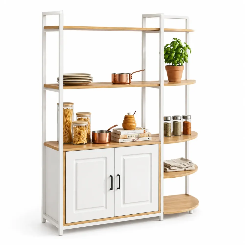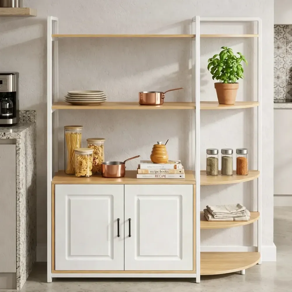 • Стеллаж подходит для хранения банок, контейнеров, специй, чашек, тарелок, кухонных принадлежностей, полотенец и небольших бытовых приборов.