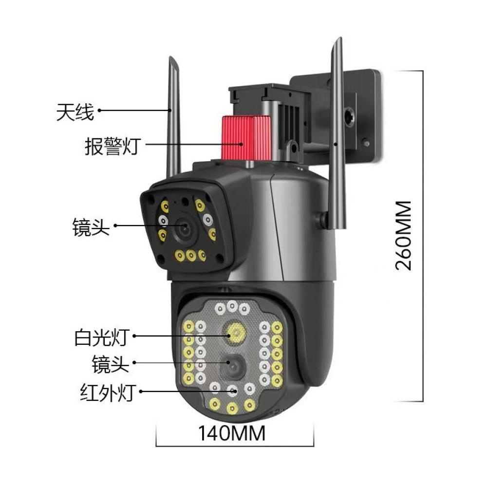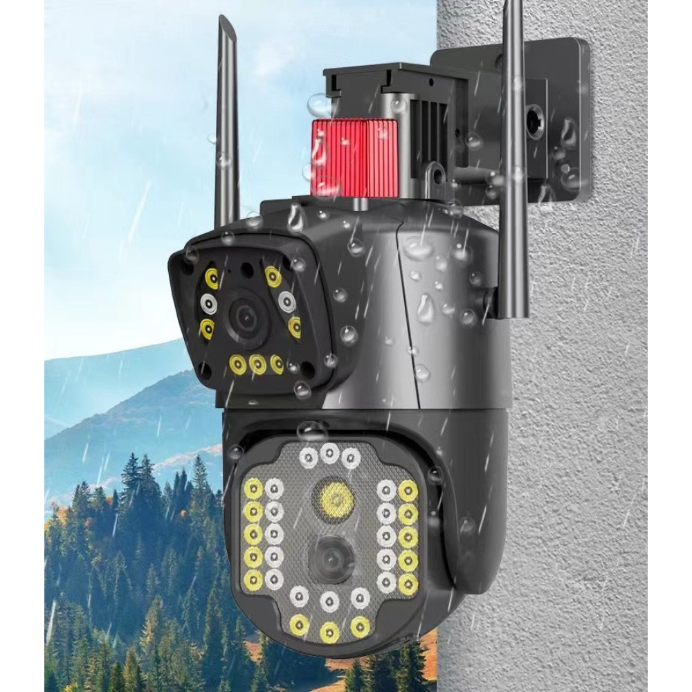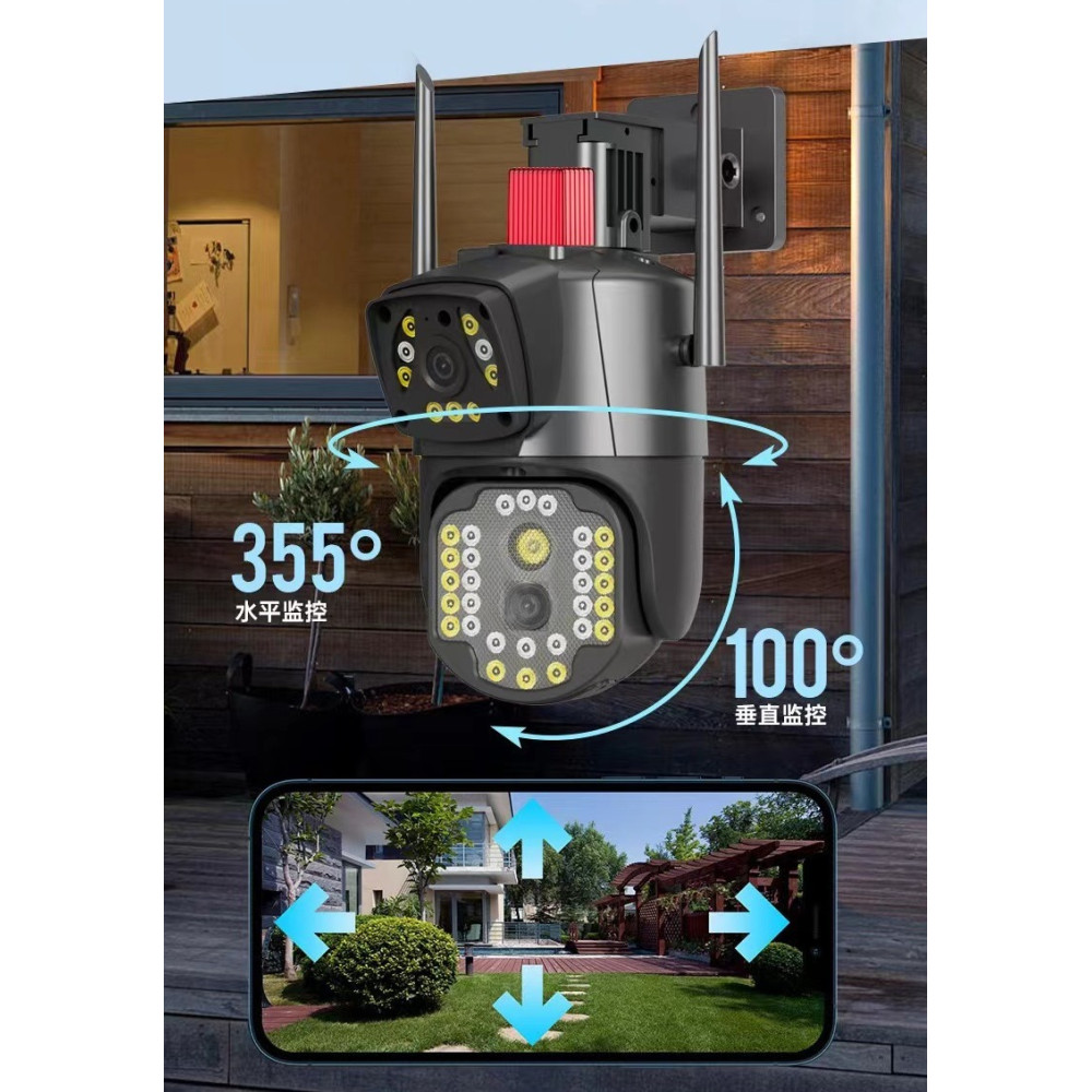 Беспроводная наружная IP камера V380 WI FI · Двойная уличная камера видеонаблюдения 2 объектива 4MP+4MP с удаленным доступом