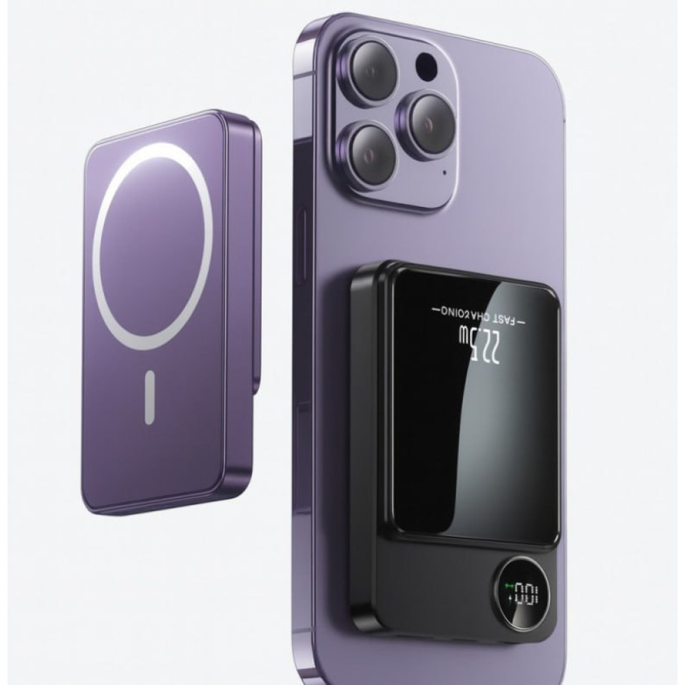 Беспроводной Power Bank MagSafe — мощный портативный аккумулятор, специально разработанный для быстрой и удобной зарядки iPhone с поддержкой технологии MagSafe. Позволяет заряжать смартфон без проводов, обеспечивая удобство в поездках, путешествиях и повседневном использовании