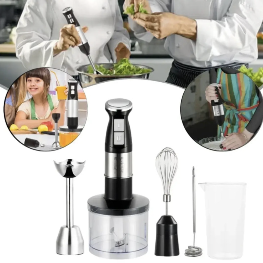 • В наборе: насадка-блендер, венчик, измельчитель, мерный стакан