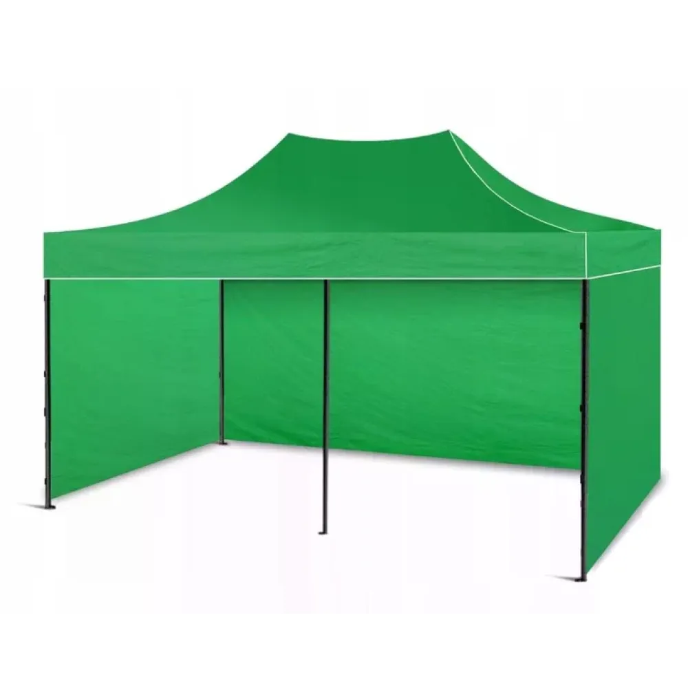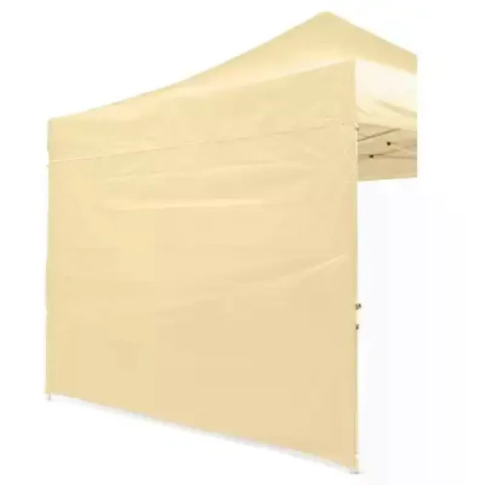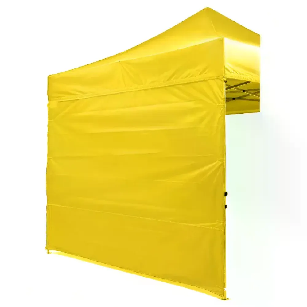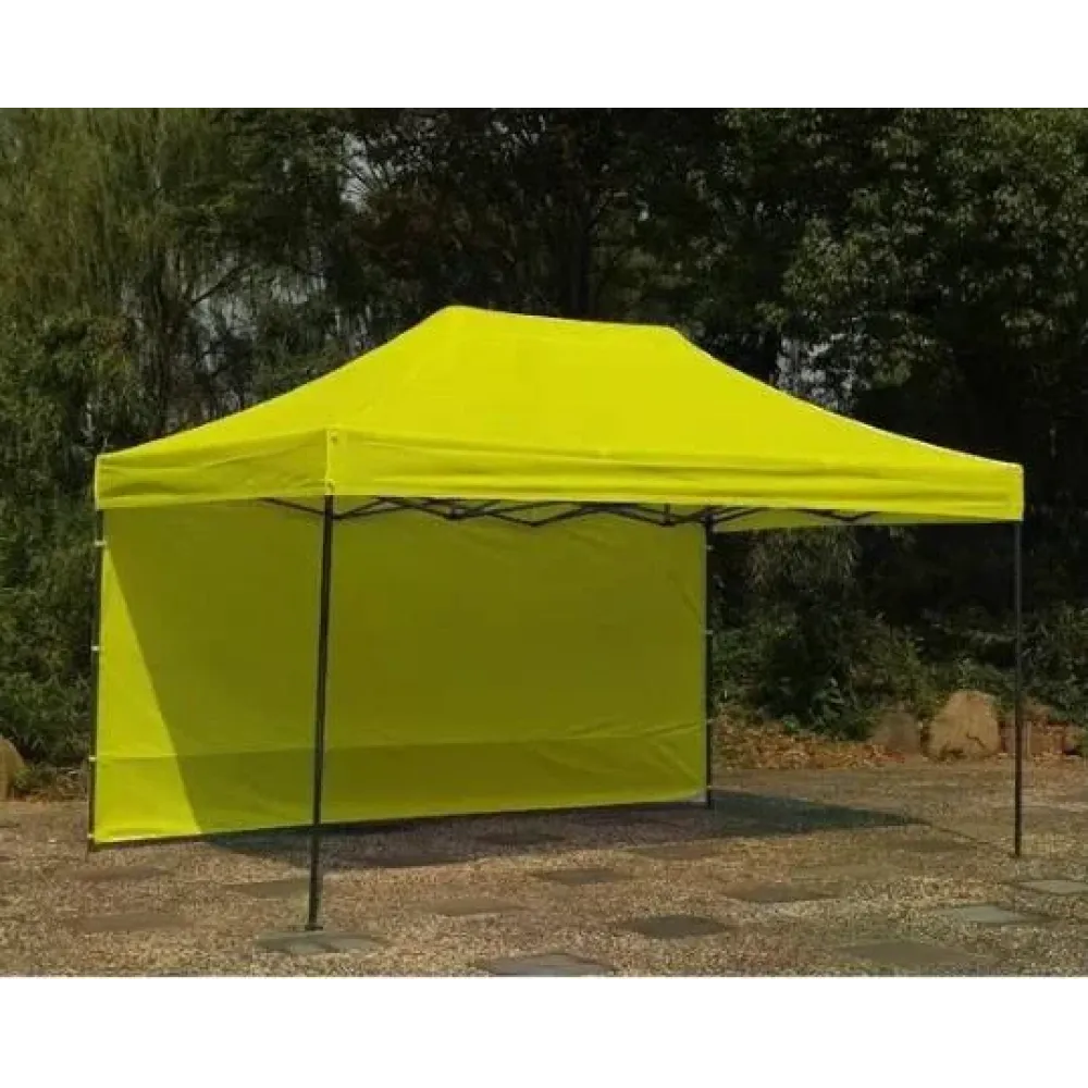 Сплошная стенка позволяет лучше организовать пространство внутри конструкции и улучшить условия использования шатра на открытом воздухе. Она частично закрывает боковую сторону, делает конструкцию более аккуратной и завершенной. Доступные цвета: зеленый, бежевый, желтый.