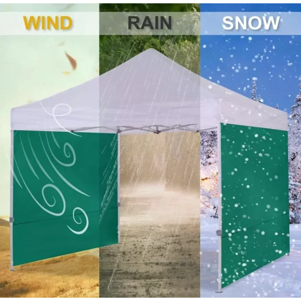 Стенка закрывает одну сторону шатра и помогает создать более закрытое внутреннее пространство. Подходит для использования на улице в разных погодных условиях.