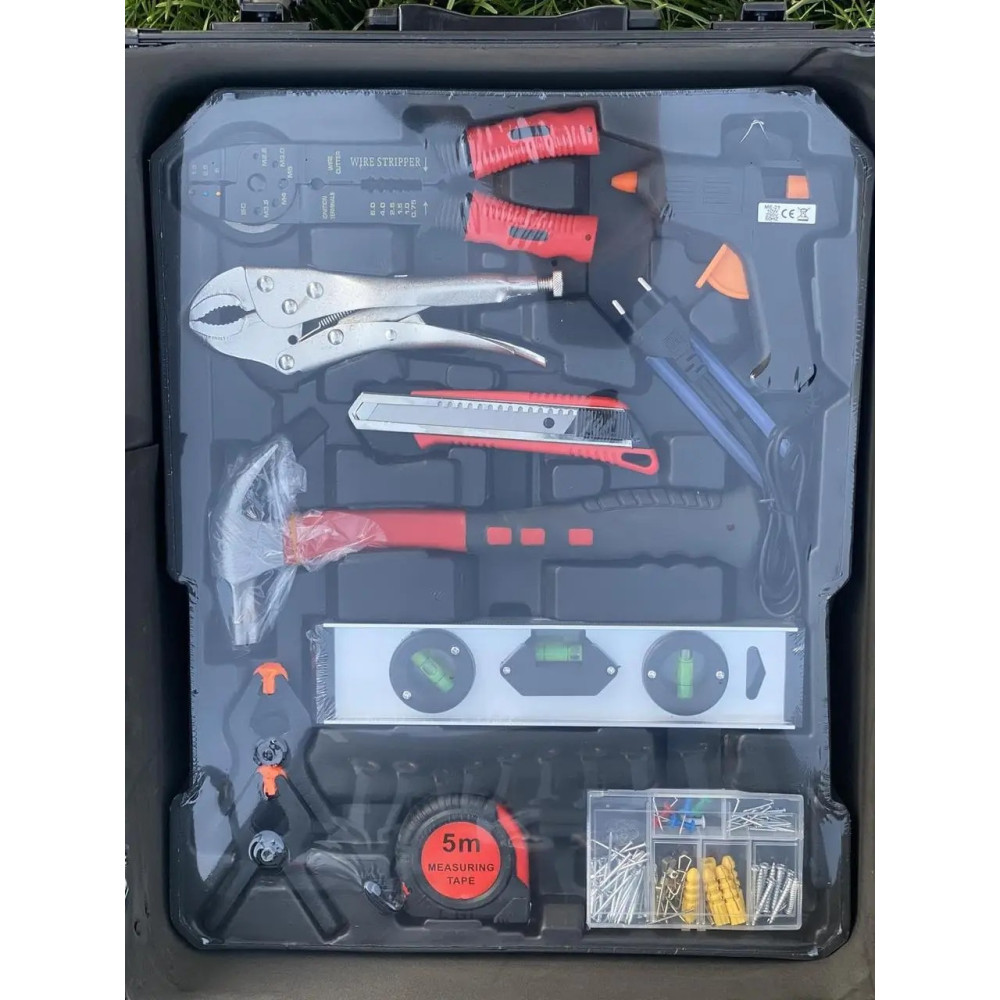 Большой профессиональный набор инструментов в чемодане 408 предметов · Универсальный набор инструментов для дома и авто с трещеткой – это ваша универсальная мастерская, которая всегда с вами. Он продуман так, чтобы вы не нуждались в покупке отдельных дополнительных инструментов, а имели всё необходимое, собранное в одном месте. 408 деталей набора позволят вам быть во всеоружии в любой ситуации, при любой поломке или ремонте.