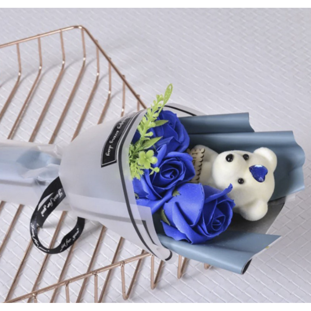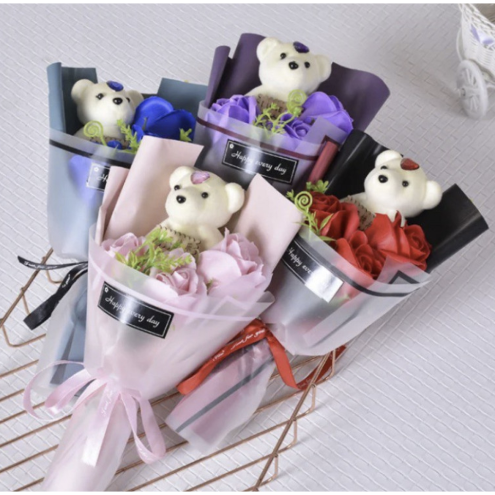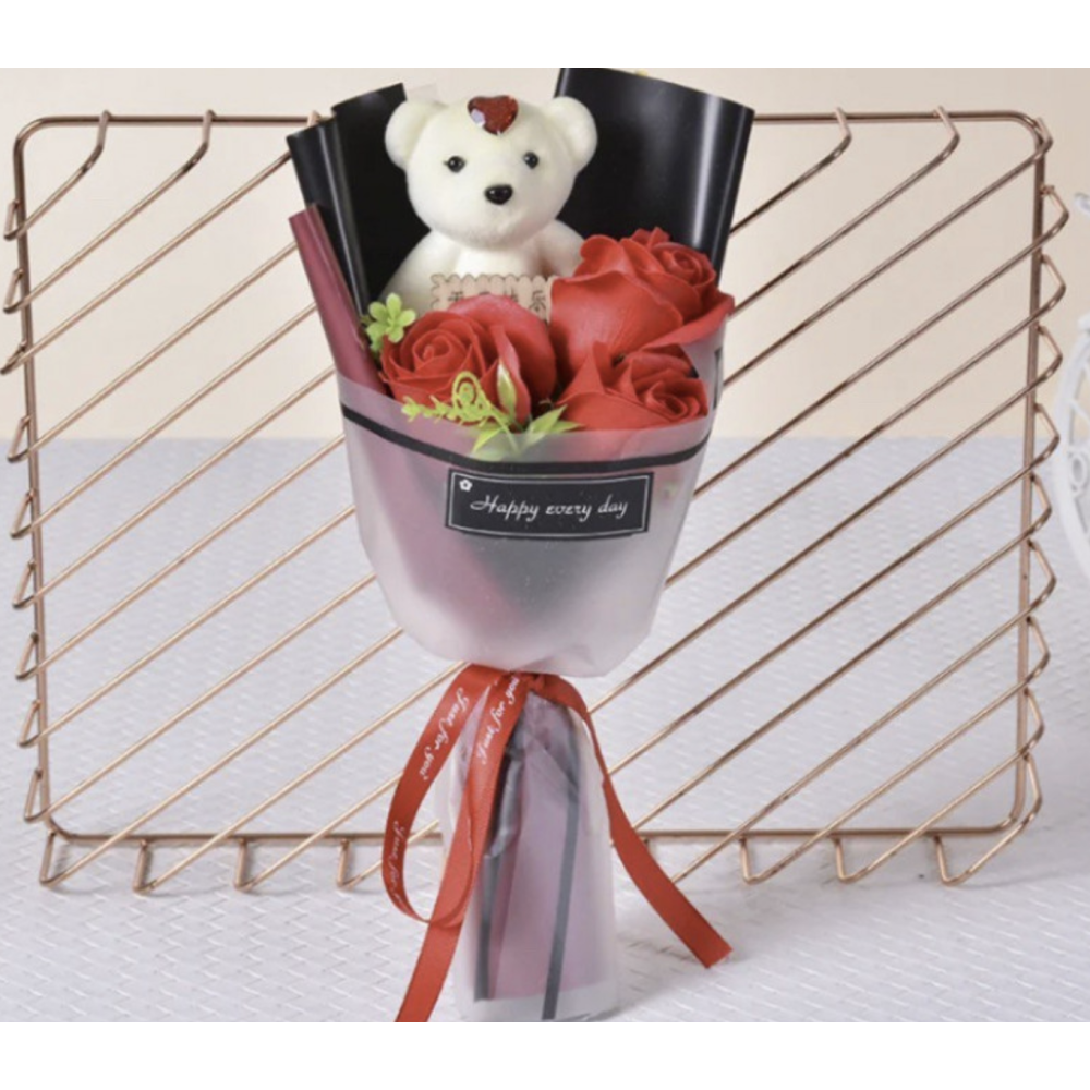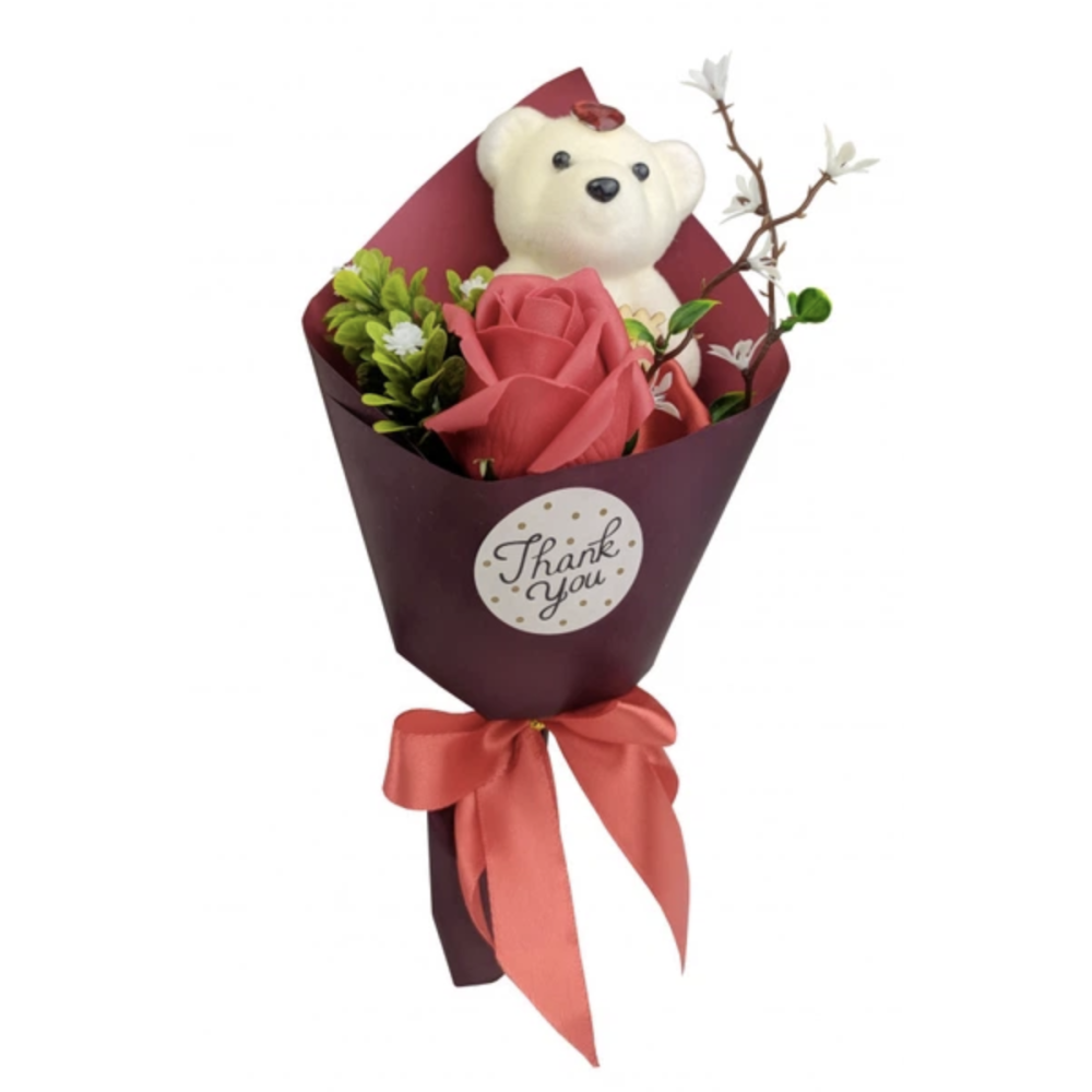 Заказывайте Букет из мягких игрушек Мишка с розами ∙ Мини-букет из мыльной розы и плюшевого мишки на нашем сайте!