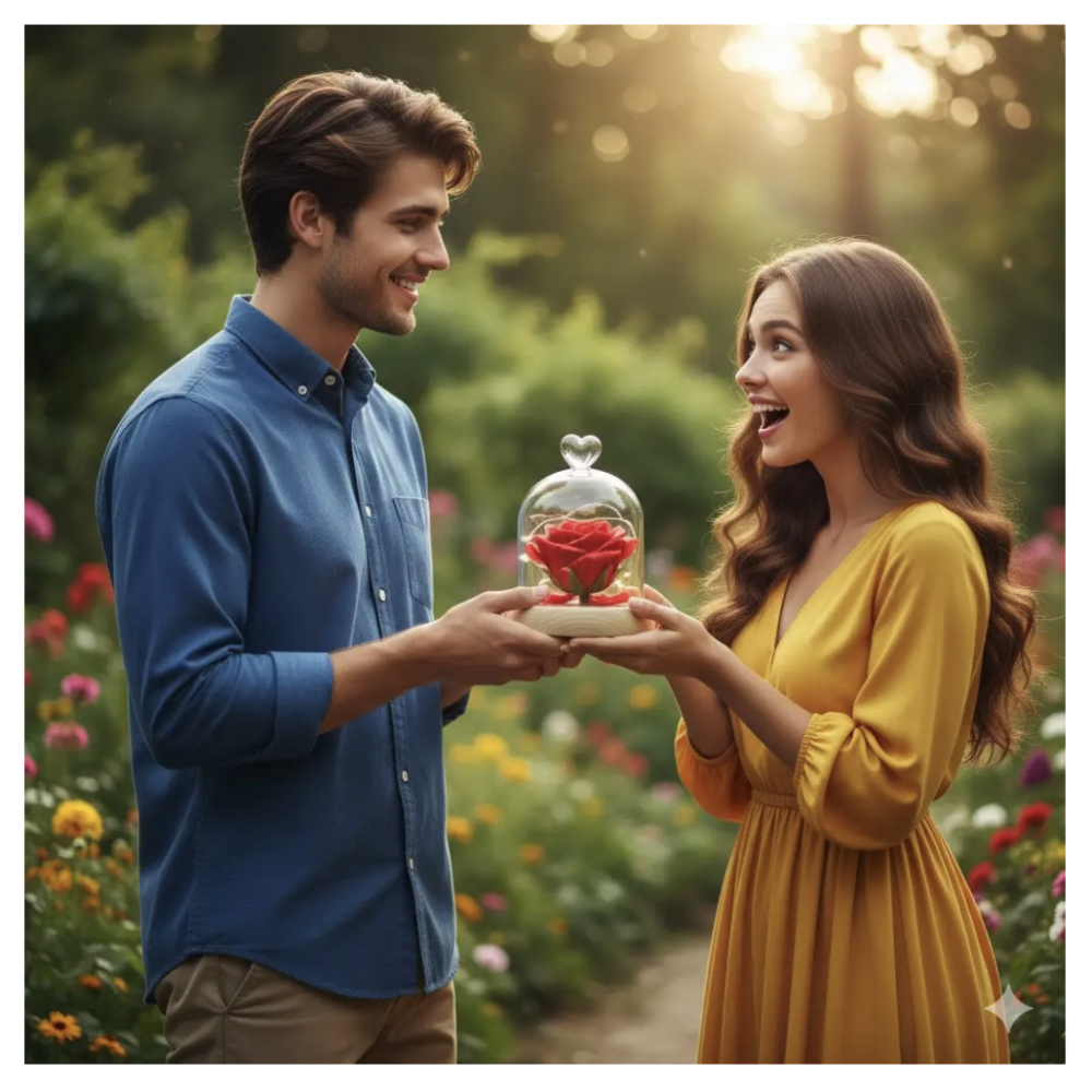 Изысканная роза в колбе — символ любви и внимания, который не требует сложного ухода и всегда выглядит безупречно. Стеклянный колпак подчеркивает красоту бутона, делая композицию идеальной для дня рождения, годовщины, 14 февраля, свадьбы или любого особого случая