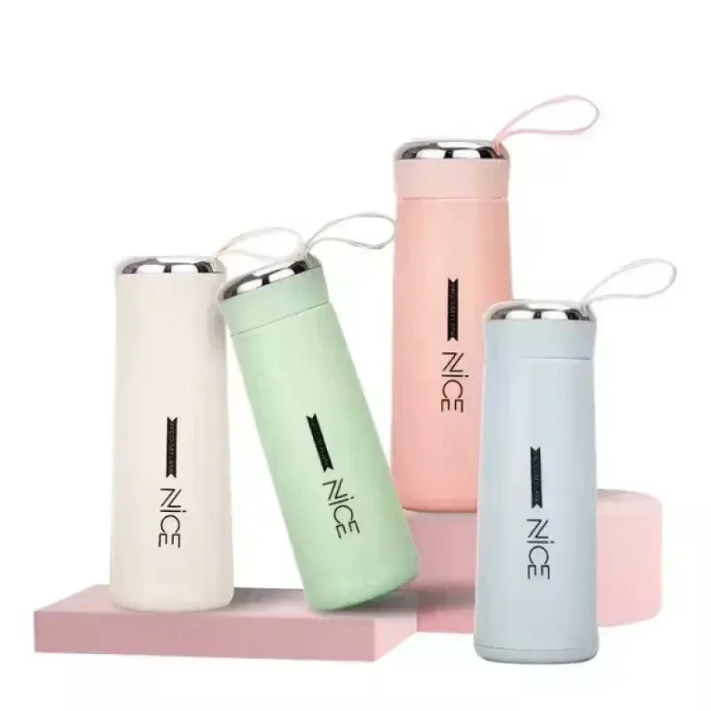 Стильная и практичная бутылка для воды Nice Bottle объемом 400 мл — идеальное решение для тех, кто ценит здоровье, удобство и чистоту вкуса напитков. Корпус выполнен из высококачественного толстого стекла с вакуумной колбой, что обеспечивает надежную защиту от повреждений и сохраняет вкус воды или сока без посторонних привкусов.