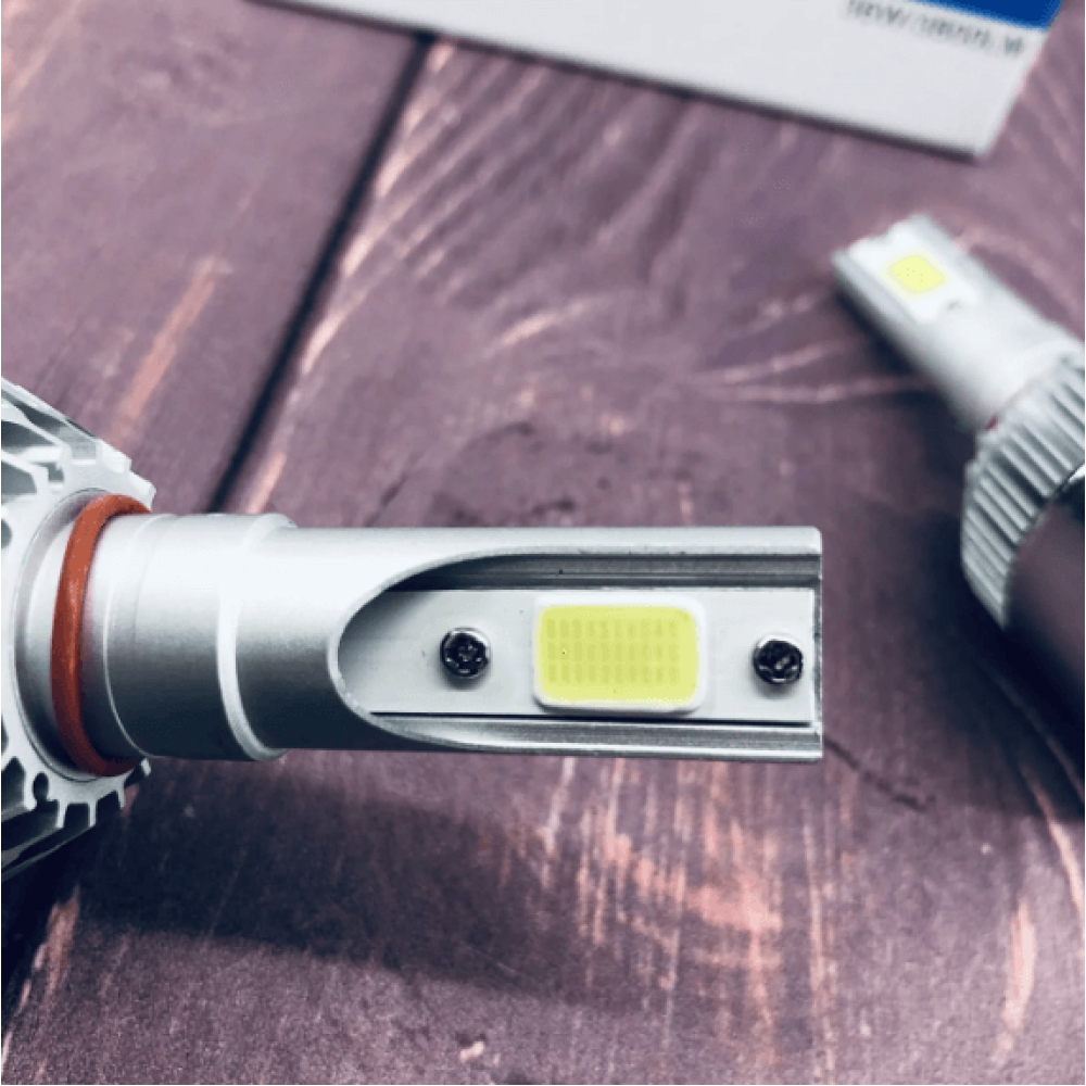 Источником света являются мощные светодиоды Cob, которые выполнены по новой технологии, где внутри одного диода размещено множество кристаллов. В данной модели стоят два диода, по одному на каждой стороне, расположены на том месте, где в галогеновых лампах находится нить накаливания, поэтому дают хорошую светотеневую границу и не ослепляют встречный транспорт.