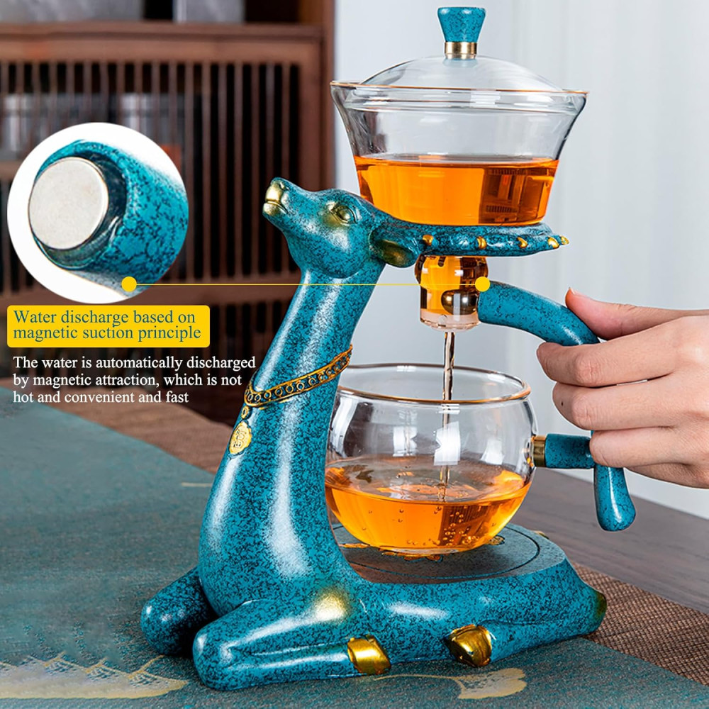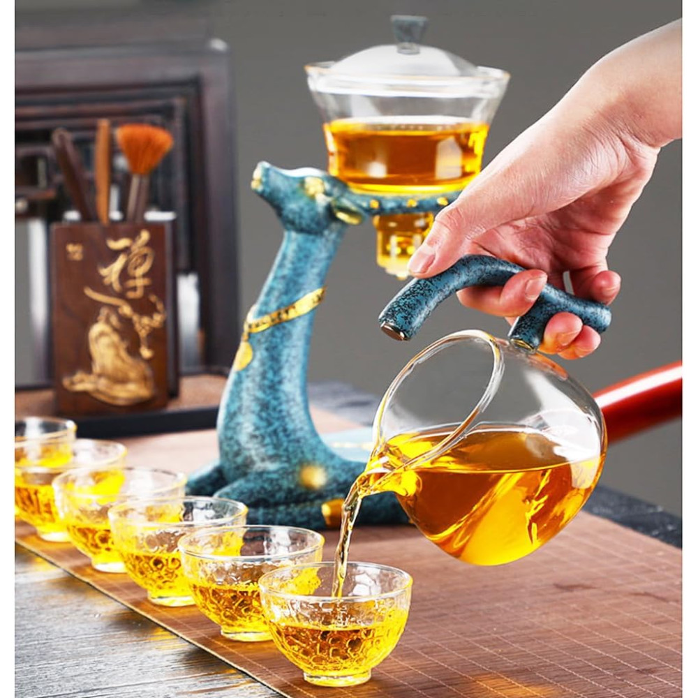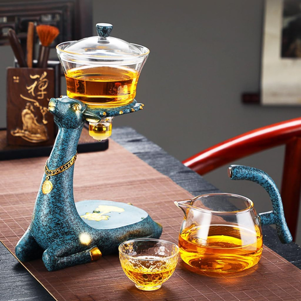 Сервиз ленивого чая H1213 «Синий Олень» сочетает элегантный дизайн и продуманную функциональность, создавая особую атмосферу чаепития. Набор включает заварочный чайник и чашку, выполненные из прочного термостекла