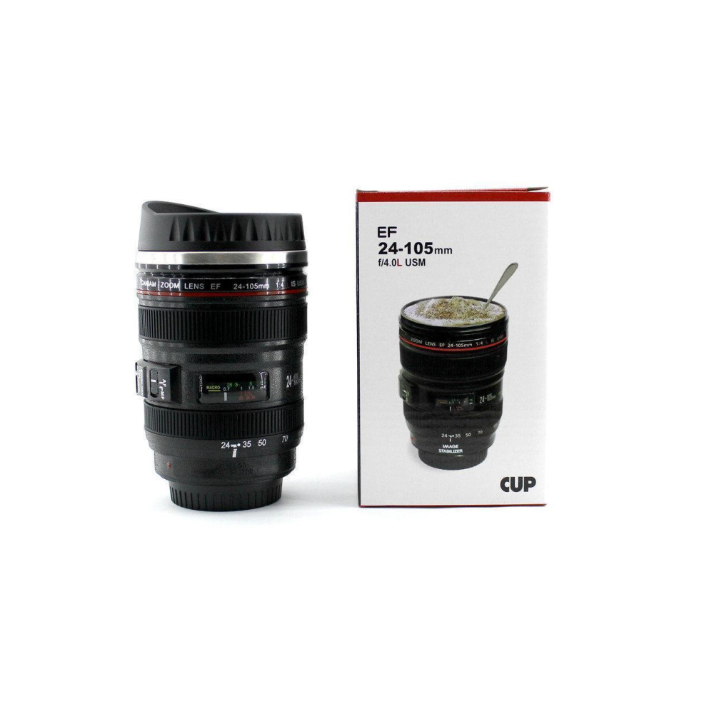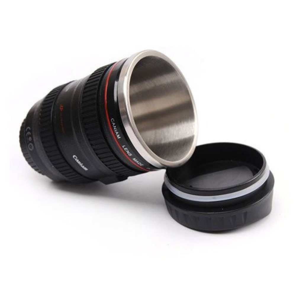 Внутри — пищевая нержавеющая сталь, в комплекте — крышка и мешочек с надписью Canon, подарочная коробка. Чашку-объектив можно использовать для горячих или холодных напитков.