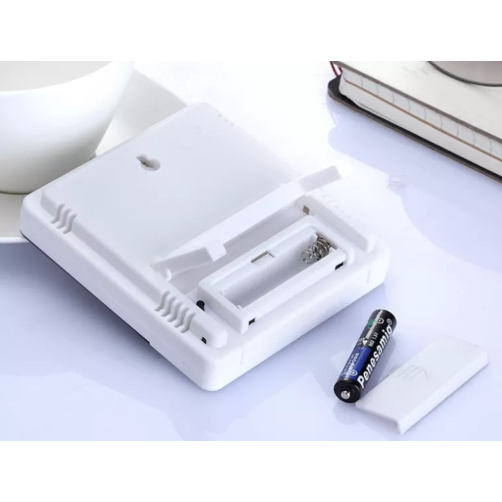 Элементом питания прибора служит одна пальчиковая батарейка типа ААА, расход питания у термометра-гигрометра небольшой, поэтому одной батарейки хватит очень надолго. Вы можете повесить электронный термометр на стену, или установить его на какую-нибудь горизонтальную поверхность, например, на рабочий стол.