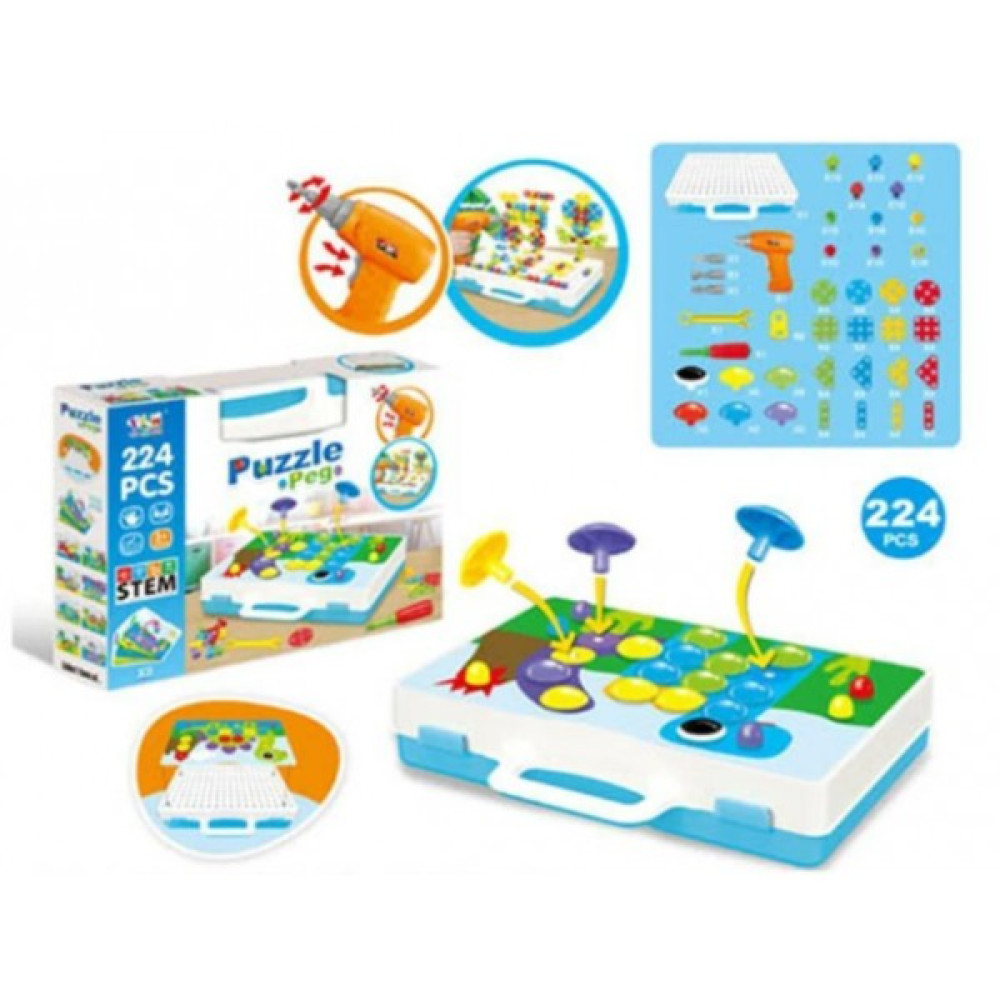 Развивающий конструктор с дрелью на 224 детали Tu Le Hui "Puzzle Peg" в чемоданчике TLH-29
