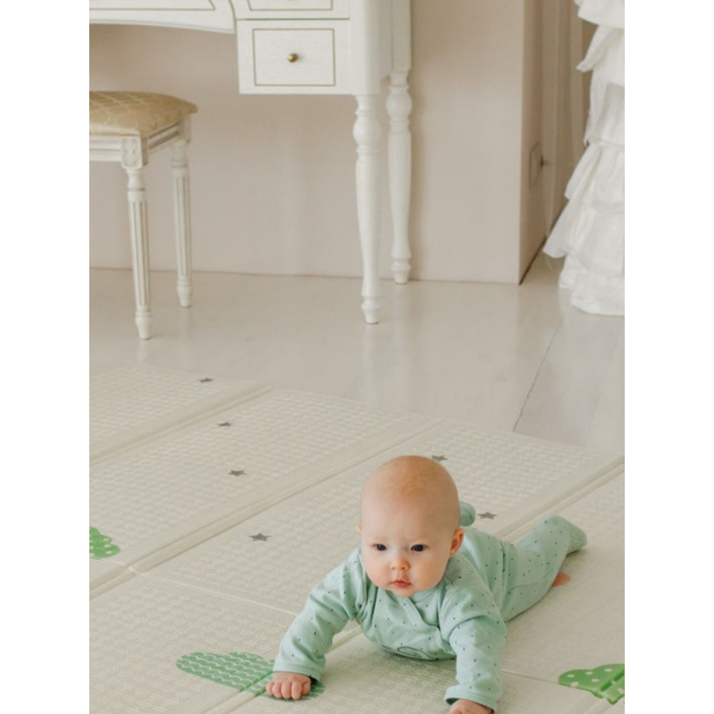 0-9 месяцев – ползание. Кроха учится ползать, а мягкая основа ковра защищает нежную кожу от повреждений.
