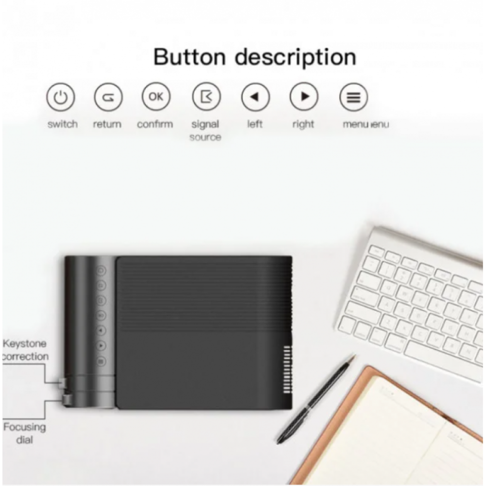 Возможность подключения настольного компьютера или ноутбука с встроенным VGA и входом HDMI - проектор может быть использован в качестве замены экрана монитора / компьютера. Имеет разъемы USB, SD / SDHC и входы для видеосигналов: HDMI, VGA, AV (AV-кабель в комплекте). Встроенный вход HDMI позволяет подключать игровые консоли и другие устройства с выходом HDMI , например: видеокамеры, цифровые приставки, спутниковое телевидение, смартфоны, планшеты и т.д.