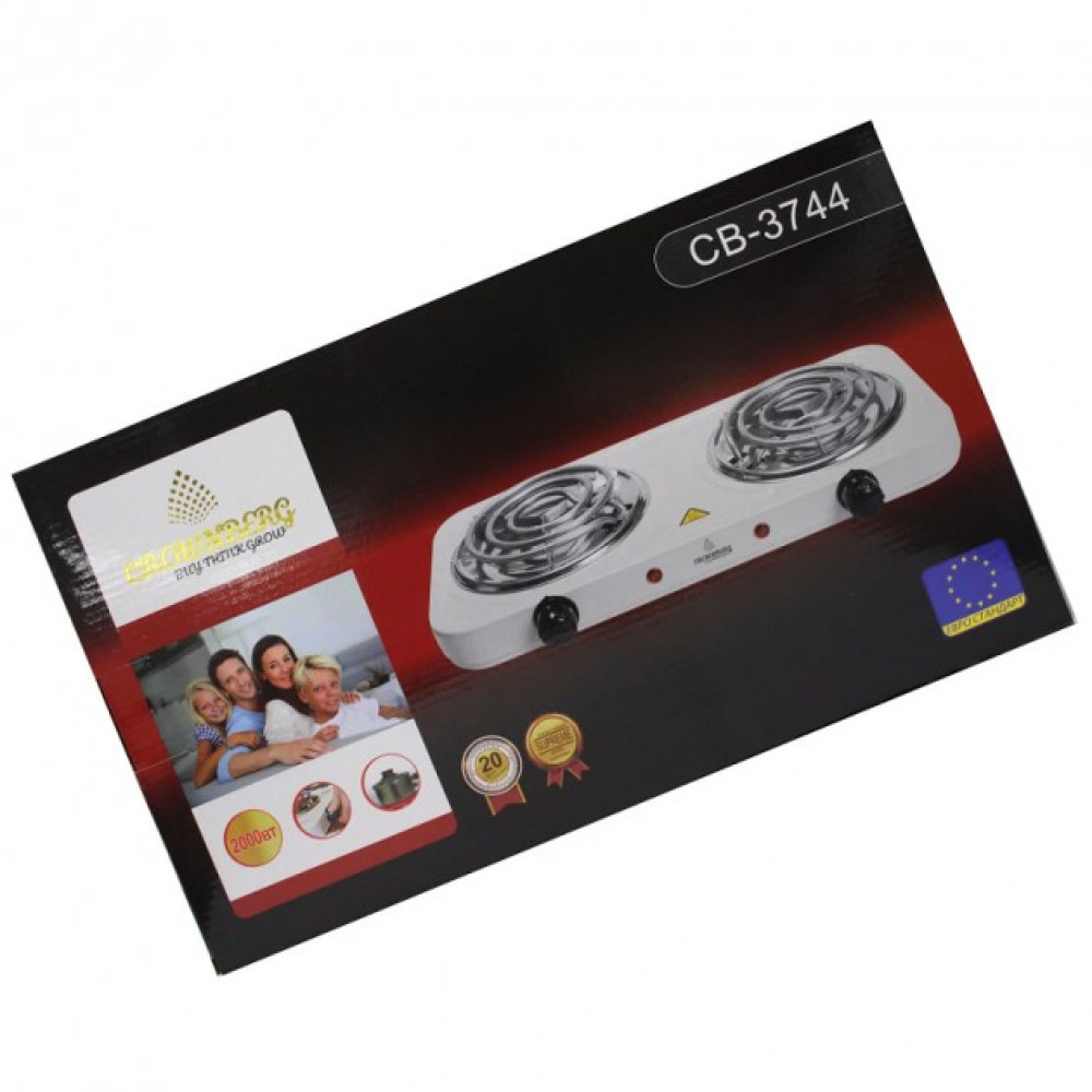 Заказывайте Плиту электрическую настольную Crownberg CB-3744 двухконфорочную спиральную 2000 Вт прямо сейчас на нашем сайте!