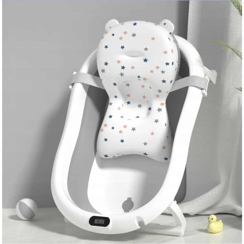• Комфорт и безопасность — мягкая подушка поддерживает малыша во время купания, предотвращая скольжение.