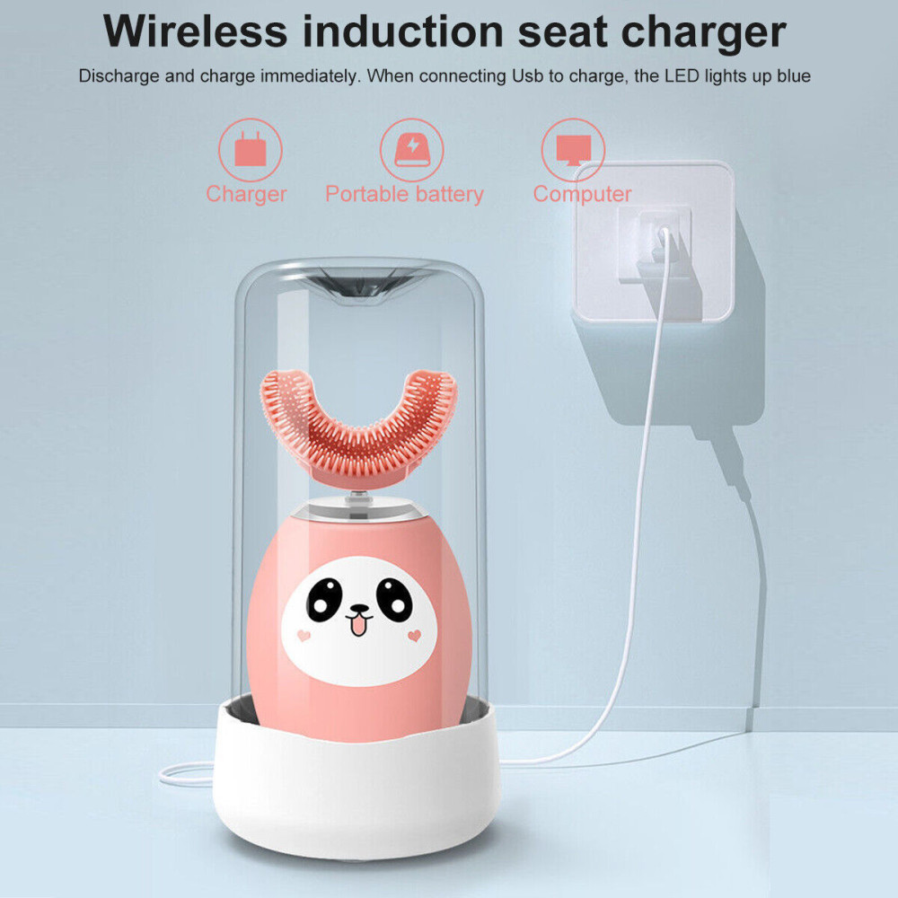 нижнюю капы, предварительно смоченные водой. Нужно поворачивать щетку влево и вправо для лучшей чистки зубов. U-образная чистка полости рта на 360 градусов. За счет очень быстрых движений из смеси воды и зубной пасты образуется поток микро-пузырьков, направляющийся вглубь межзубных промежутков. Ультразвук улучшает отхождение зубного камня и снижает риск развития кариеса. Нет необходимости заставлять детей чистить зубы – милый мультяшный дизайн заставит их делать это непринужденно и с удовольствием. Простота в поддержке гигиены полости рта разработана специально для детей. После всех процедур щетку достаточно промыть водой.