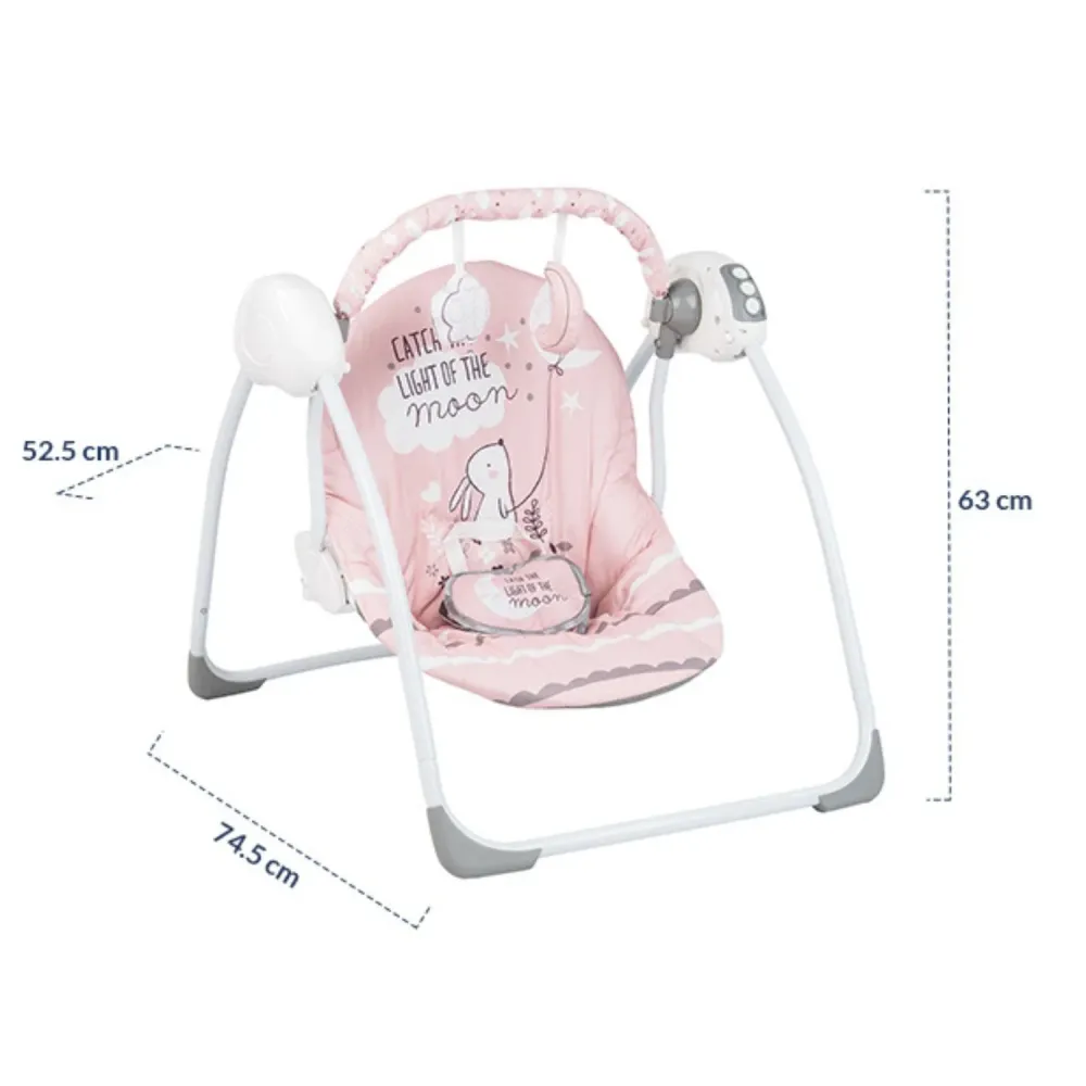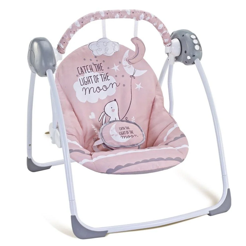 Дитяча електронна гойдалка для новонароджених X-645 рожева • Заколисуючий центр для малюка з автоматичним гойданням, мелодіями та м’яким сидінням