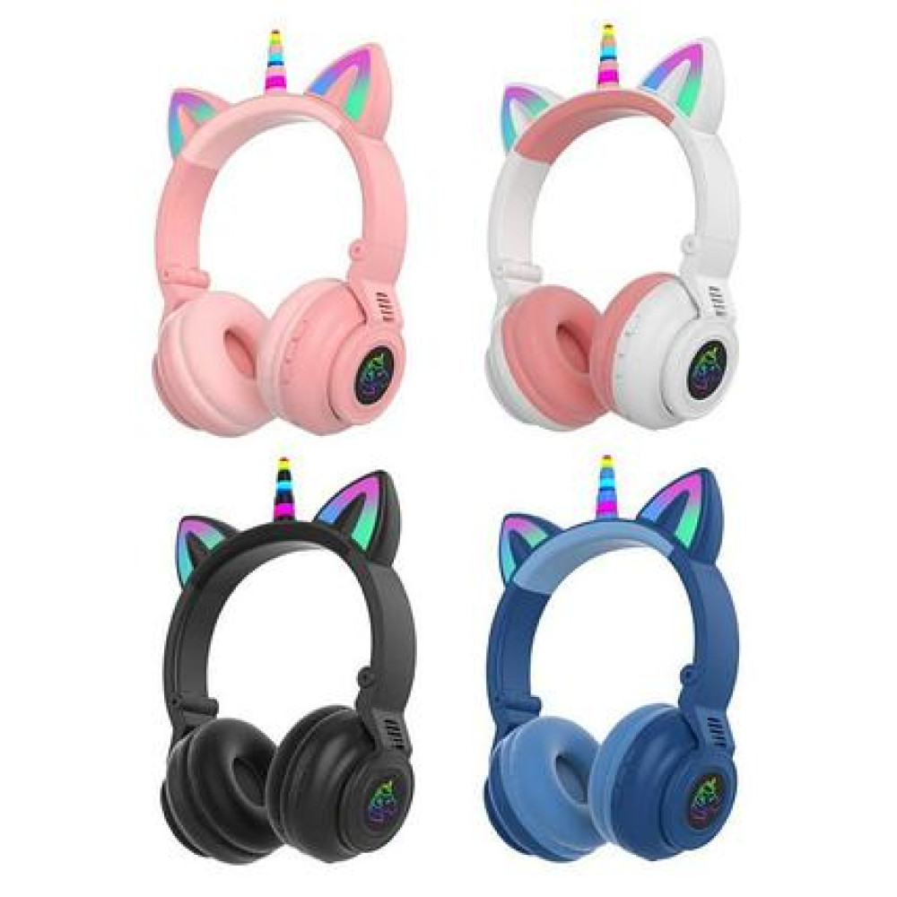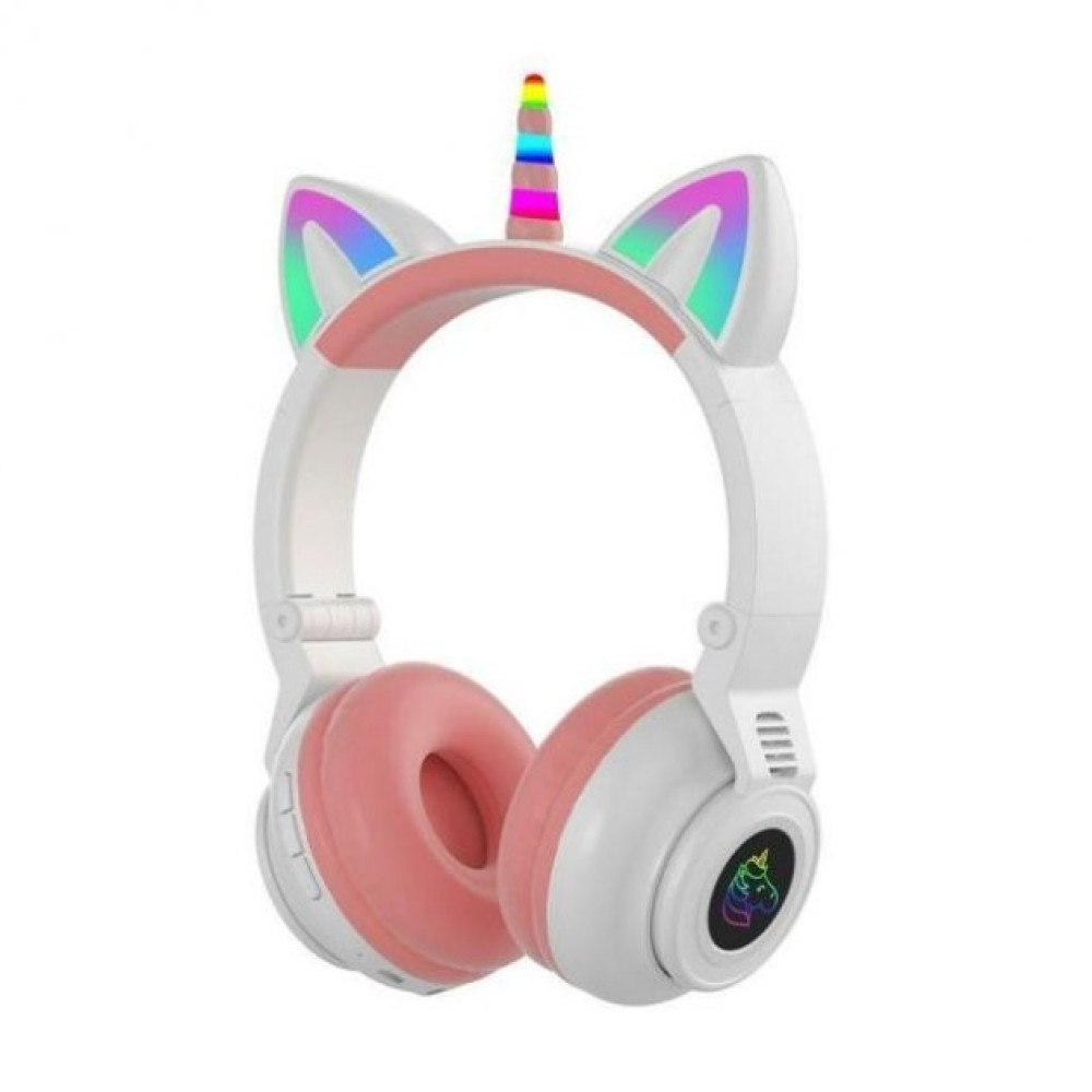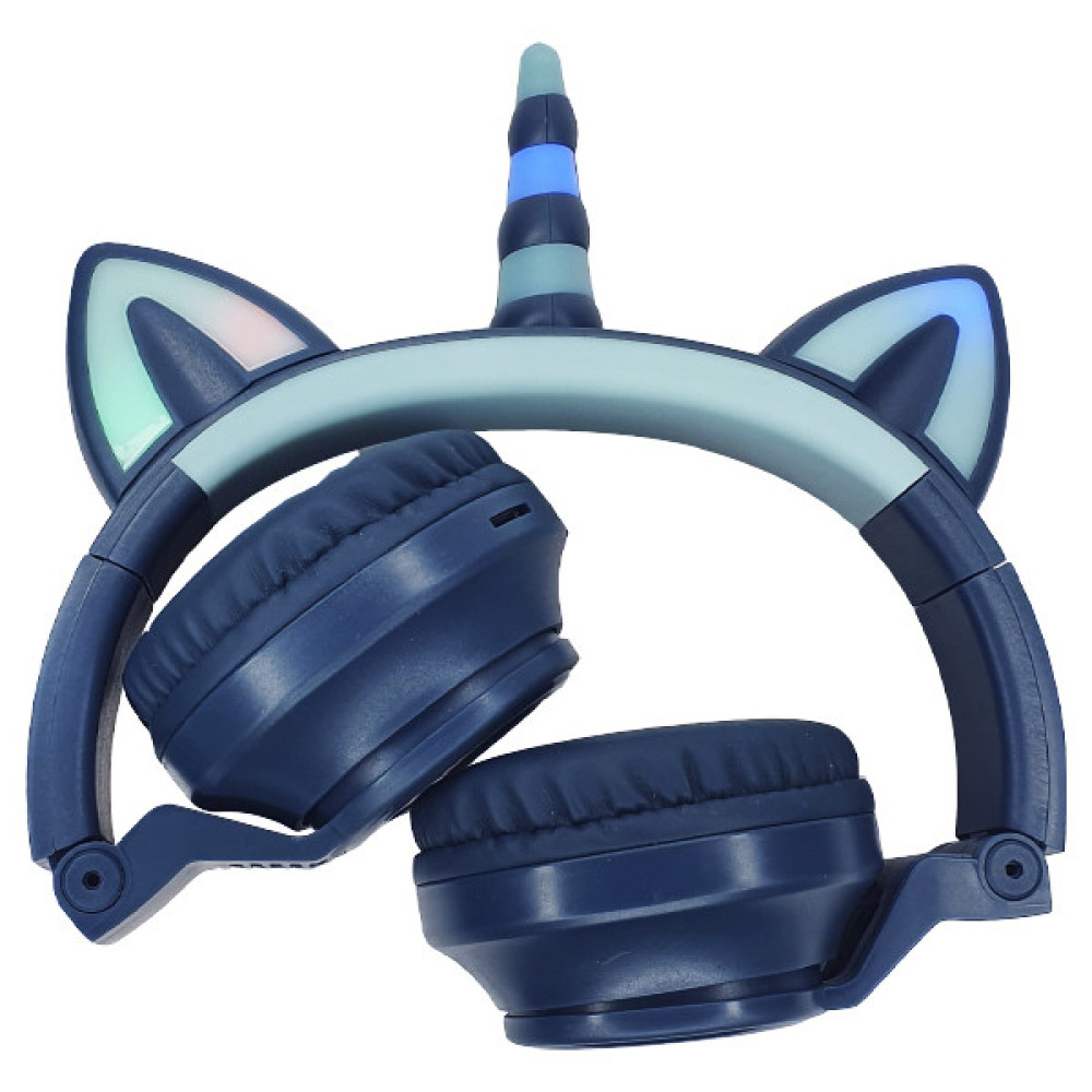 Беспроводные Bluetooth наушники Единорог с кошачьими ушками и рожком STN-27 с LED подсветкой