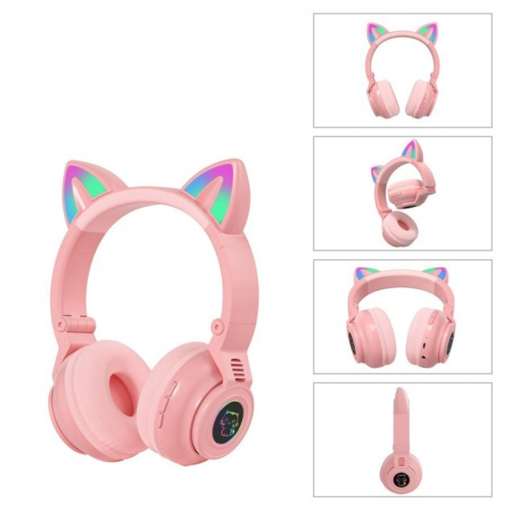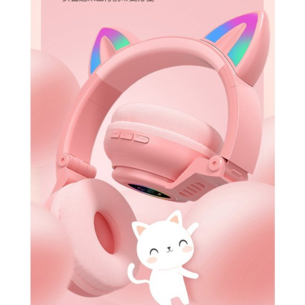 Детские беспроводные наушники STN-26 с кошачьими ушками c подсветкой и микрофоном Bluetooth c MicroSD