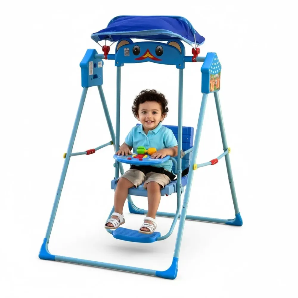 Заказывайте детские складные качели для дома голубые X623 с козырьком прямо сейчас на нашем сайте!