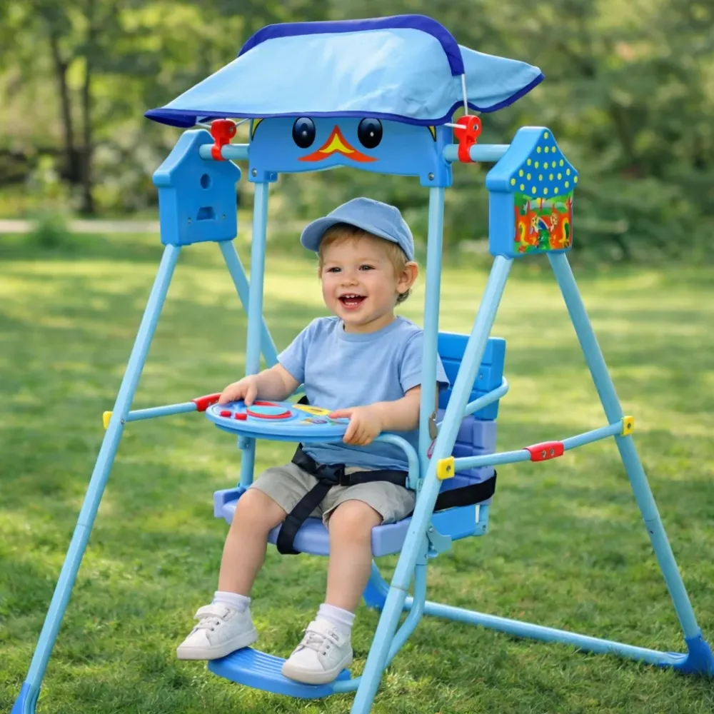 Детская складная качеля X623 — это удобный вариант для отдыха, спокойного укачивания и ежедневных игр малыша дома или на свежем воздухе. Модель выполнена в голубом цвете, оснащена защитным козырьком от солнца, световыми и звуковыми эффектами, а также складной конструкцией для более удобного хранения. Благодаря продуманному формату такие детские качели помогают создать для ребенка комфортное и безопасное пространство на каждый день.