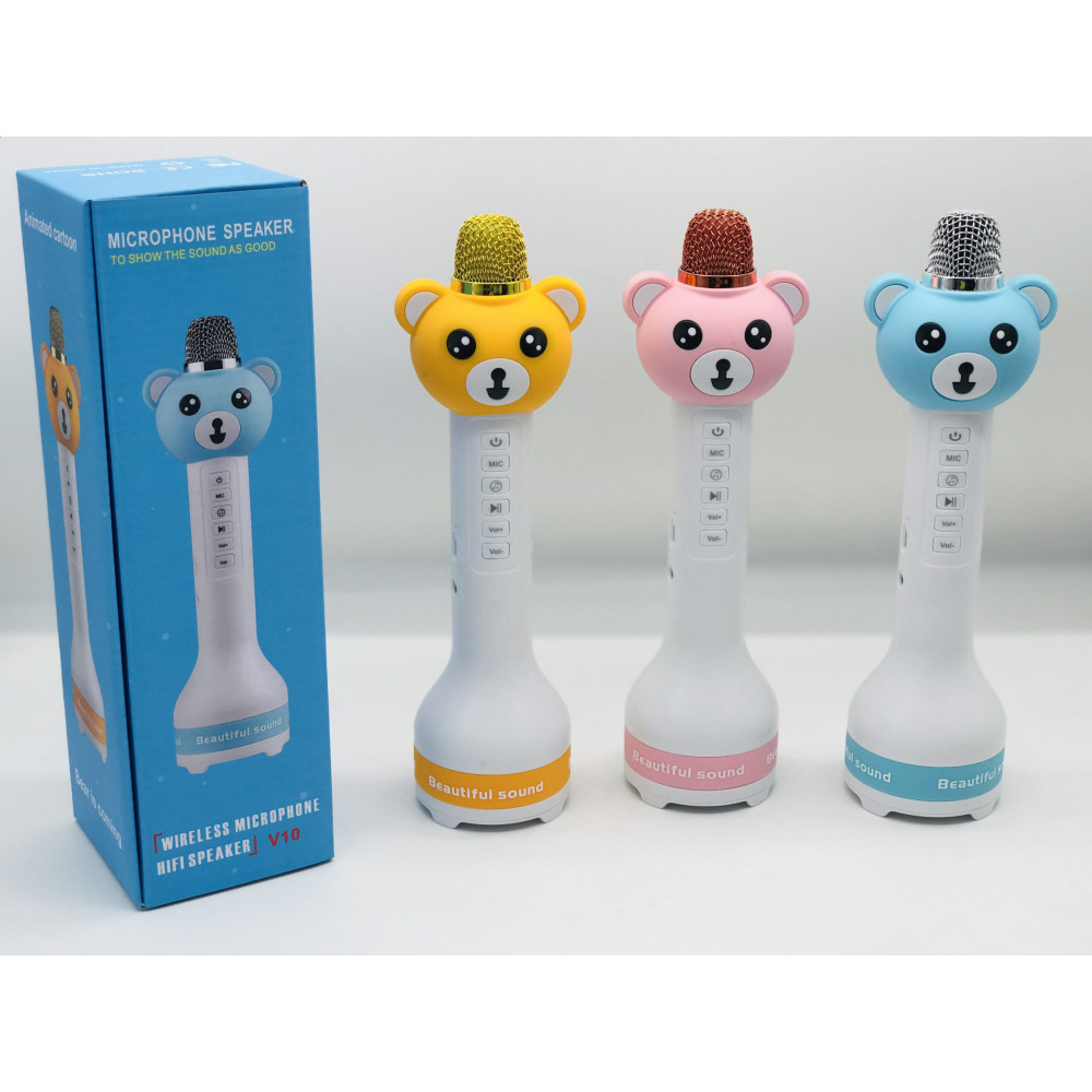 Детский караоке микрофон и Bluetooth-колонка 2 в 1 Animated Cartoon V10 подходит для IOS и андроид смартфонов, для планшетов, Bluetooth и так далее. Может быть использован в качестве Bluetooth динамиков. Есть функция записи на карту памяти microSD.