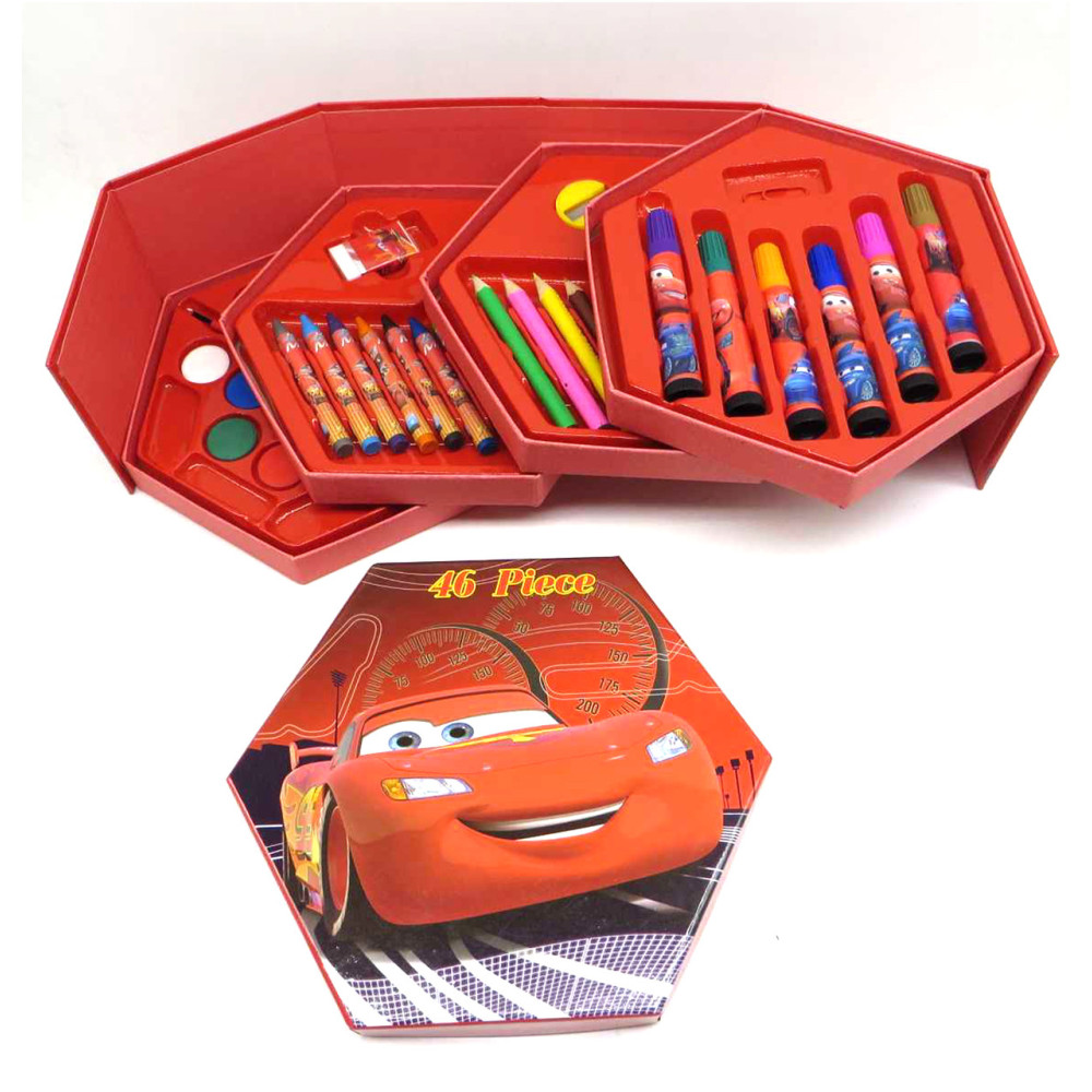 Детский художественный набор для рисования и творчества "Тачки", 46 предметов в боксе-шестиграннике