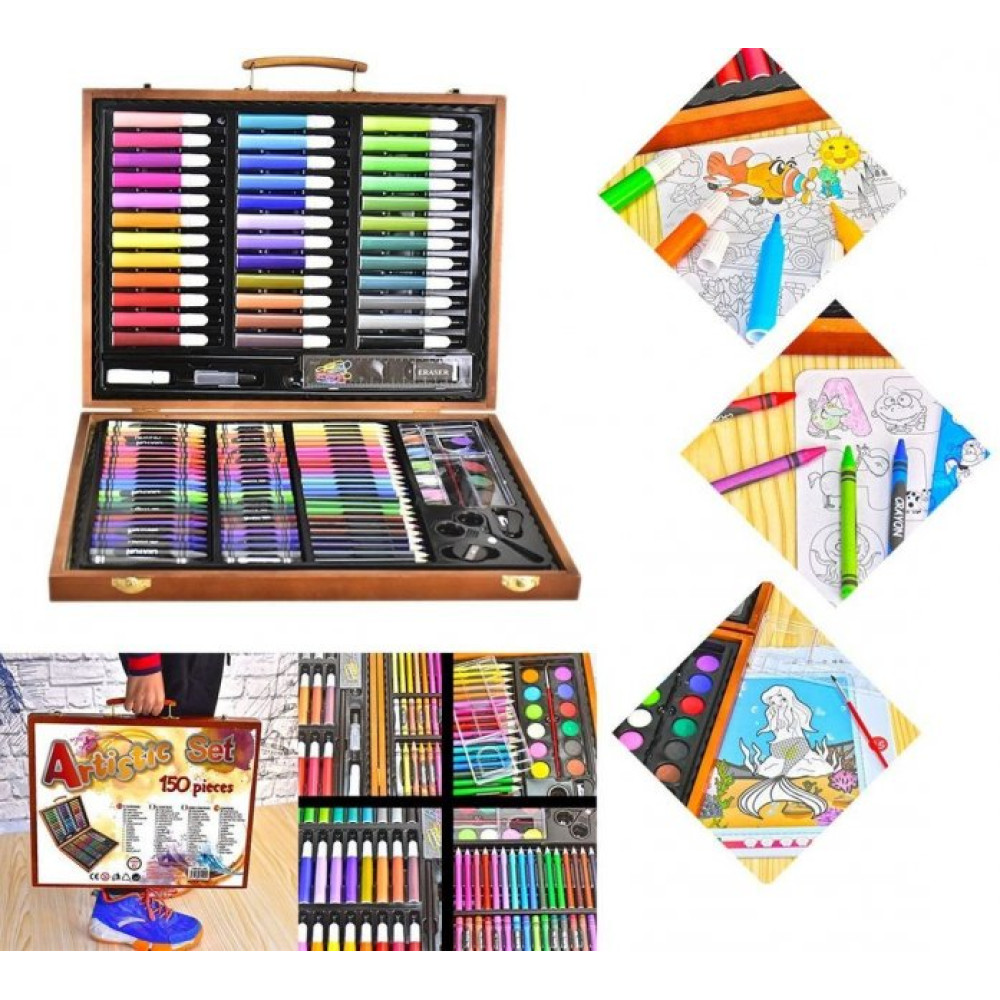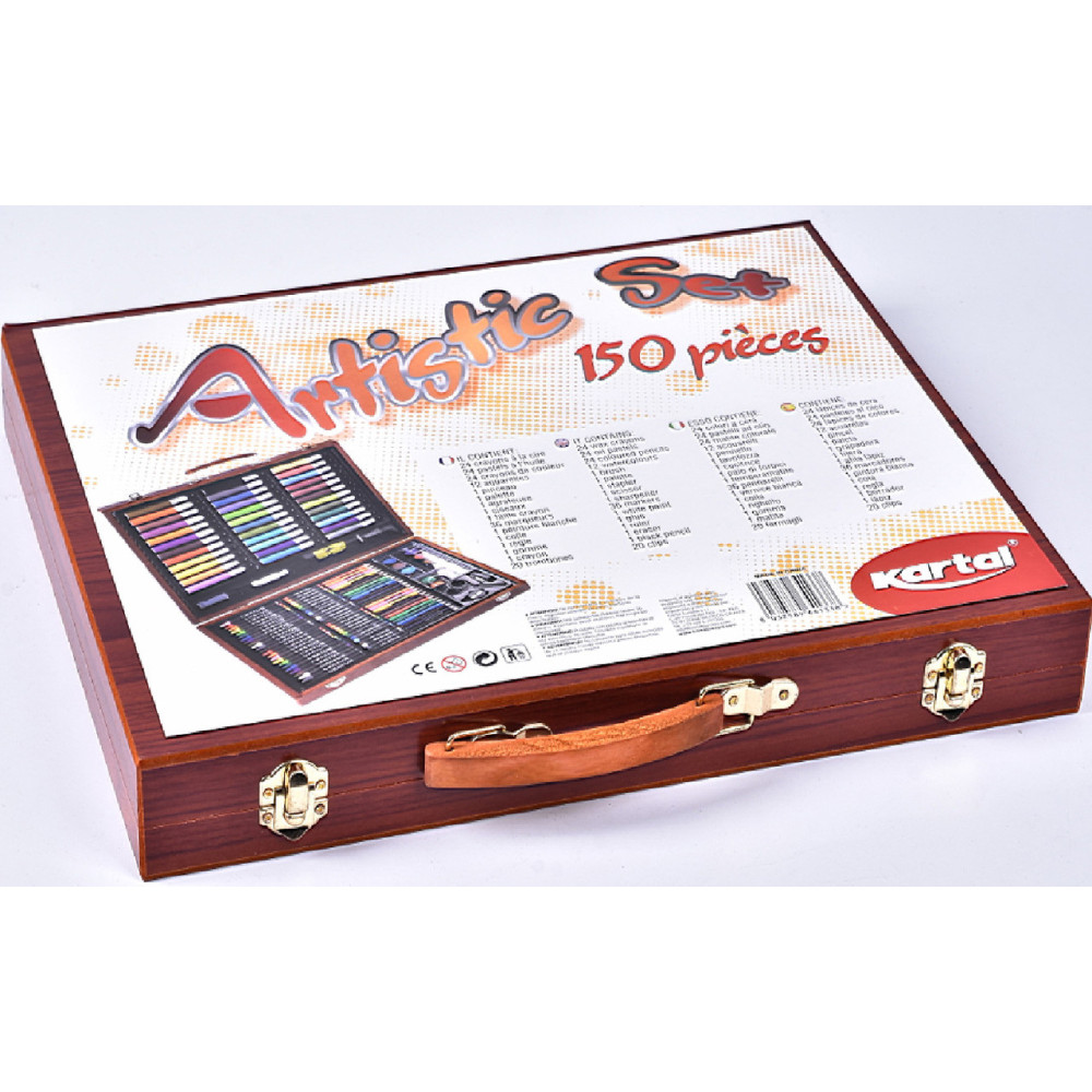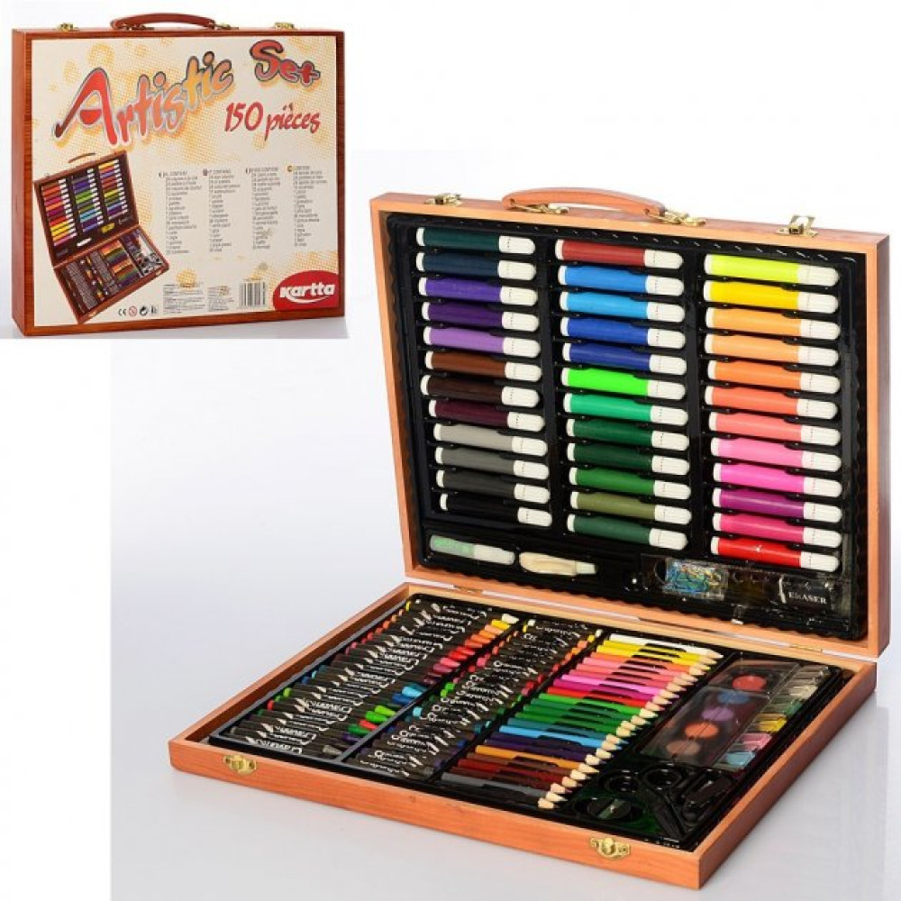 Детский набор для рисования и творчества Kartal на 150 предметов в деревянном чемодане ∙ Чемоданчик юного художника – это находка для творца! В наборе находятся сразу все предметы, необходимые для создания рисунков, аппликаций и других шедевров. Дети будут особенно рады такому подарку – все яркие предметы аккуратно размещены в удобном чемоданчике. Огромный выбор канцелярских товаров поможет быстрее развиваться ребенку.