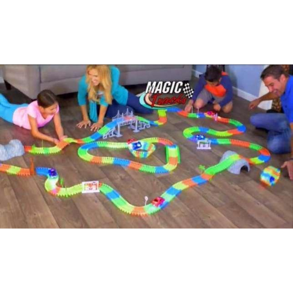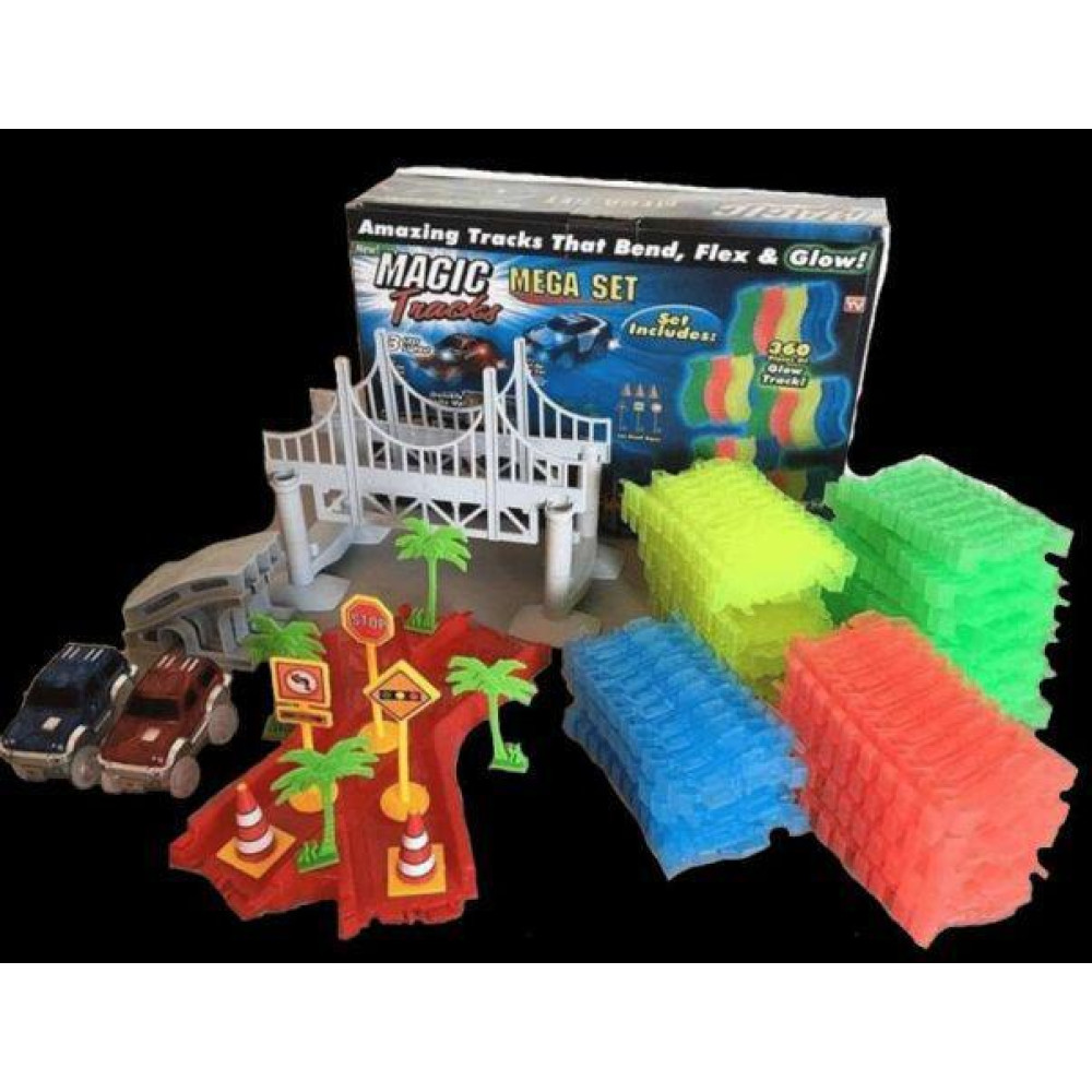 Magic Tracks MEGA SET 360 деталей - это гоночная трасса, которая гнется в любом направлении, а главное - светится в темноте! Трасса легко трансформируется на 360 градусов. Можно менять маршрут прямо во время заезда машинок! Каждый новый заезд - новая конфигурация трассы - такая, какую только захотите! Самые эффектные заезды происходят в темноте, ведь трасса и машинки Magic Tracks светятся красивым неоновым светом!