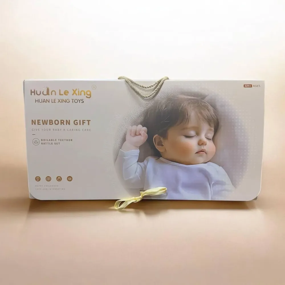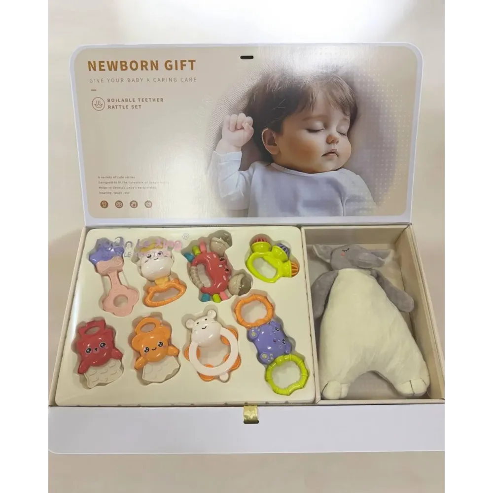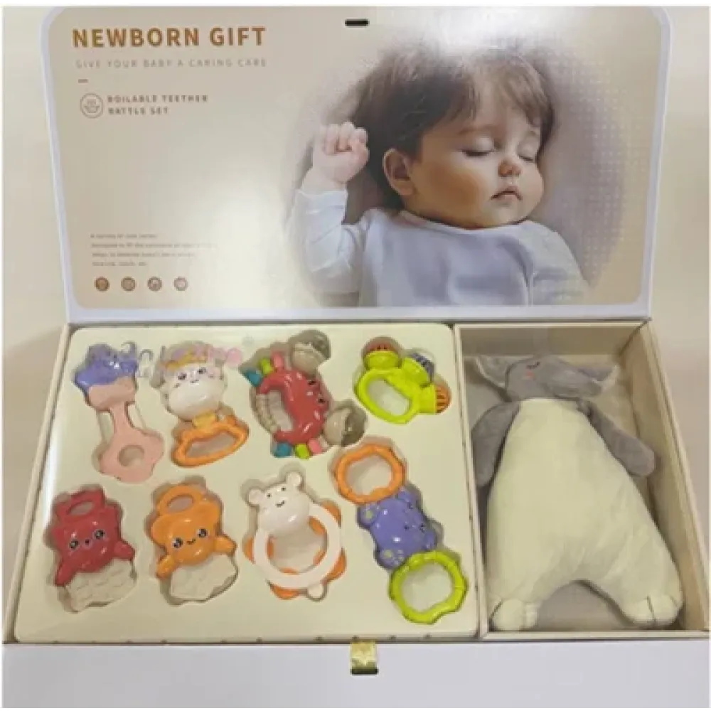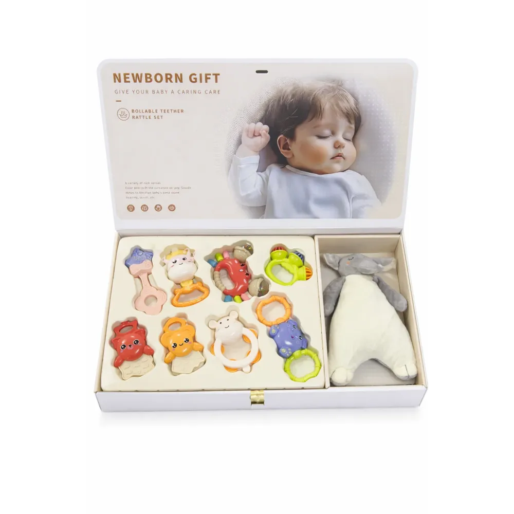 Детский набор погремушек для новорожденных 9 в 1 X-653 • 8 погремушек и мягкая игрушка в подарочной коробке для малыша с рождения