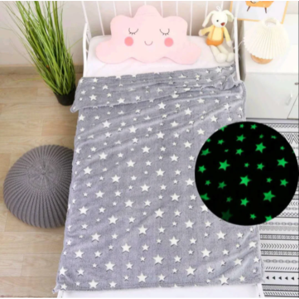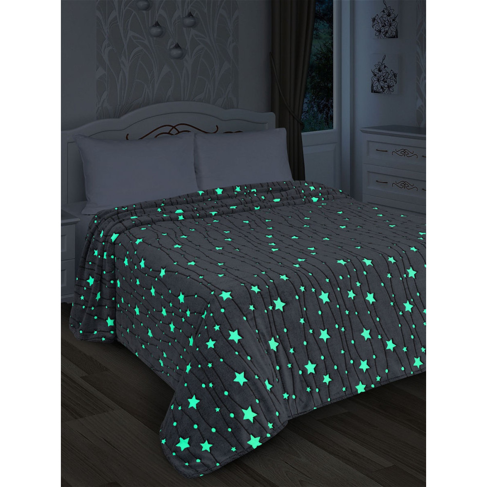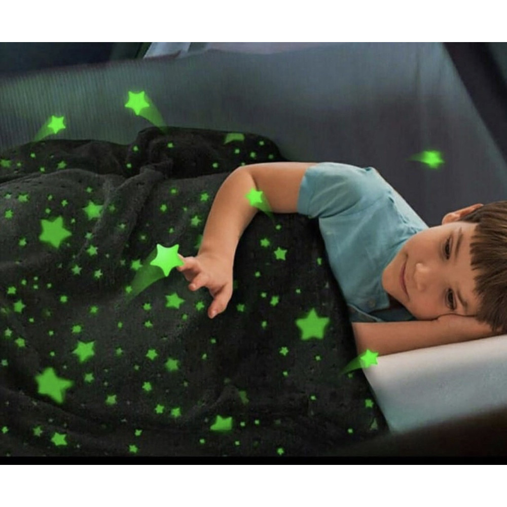 Детский плед светящийся в темноте ∙ Люменисцентный неоновый плед – одеяло со звездами ∙ Покрывало «день-ночь»