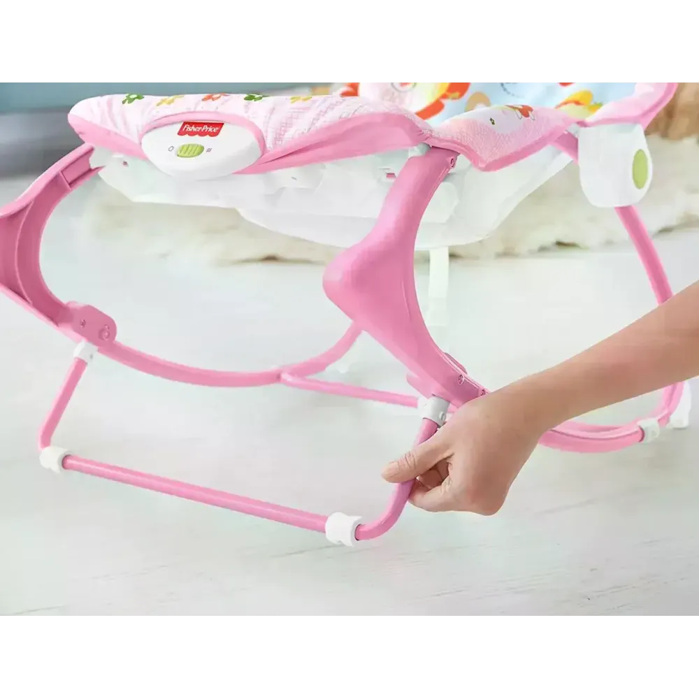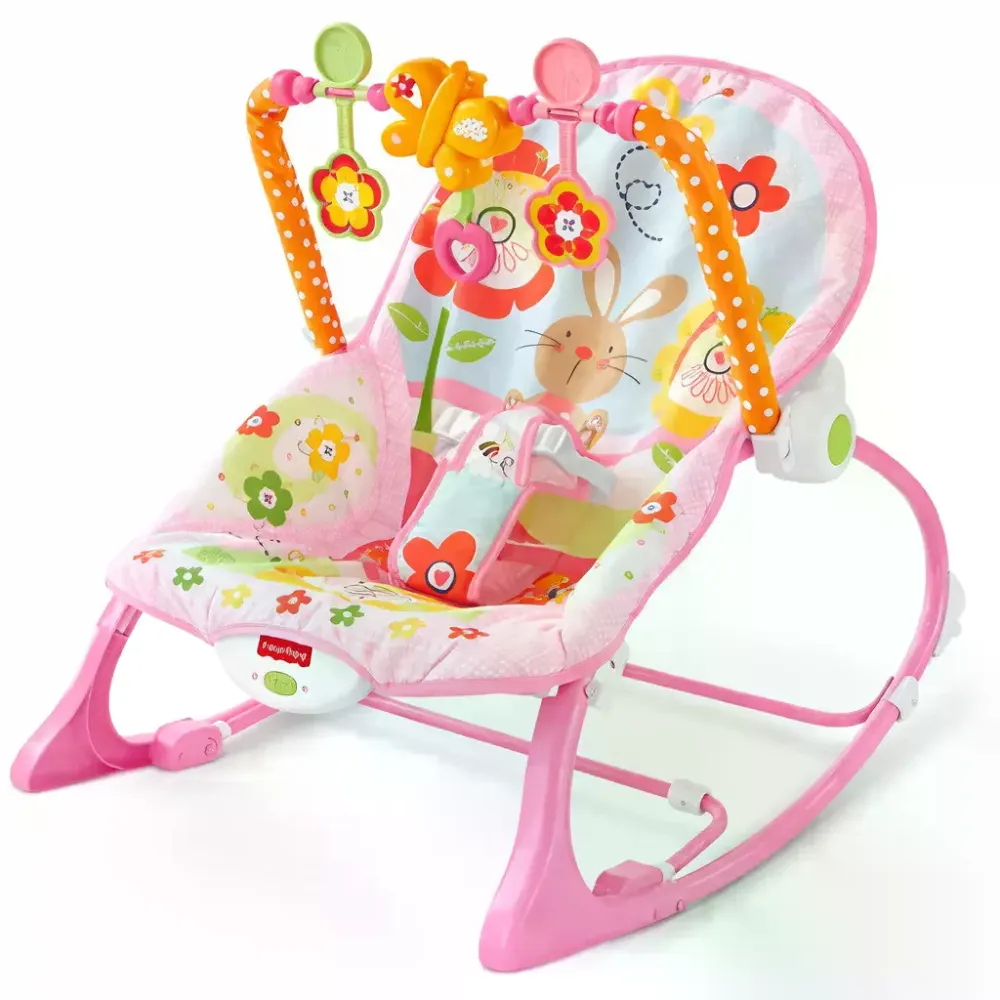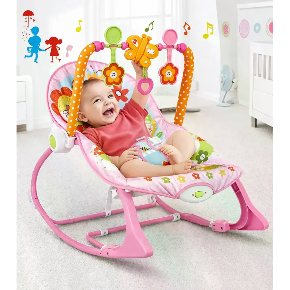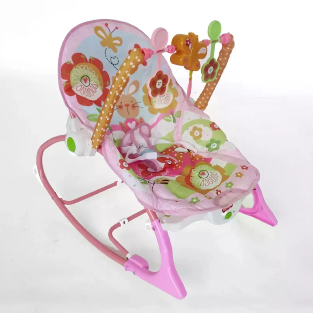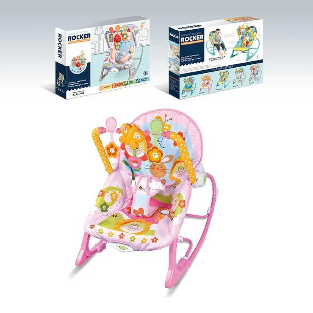 Детское кресло-качалка 68112-1 разноцветное • Шезлонг-качалка для новорожденных с вибрацией, мелодиями, игрушками и регулируемой спинкой