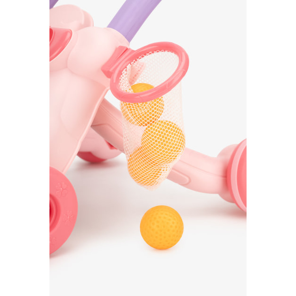 Игровая платформа включает сортер, лабиринт, шестеренки, часы, счеты и даже баскетбольное кольцо, что делает эти ходунки не только тренажером для первых шагов, но и настоящим центром развития для малыша.
