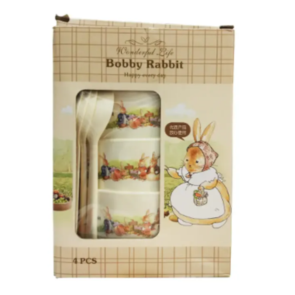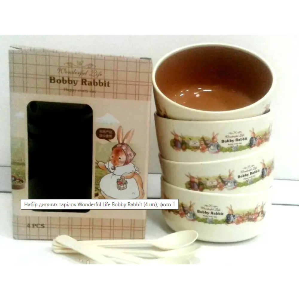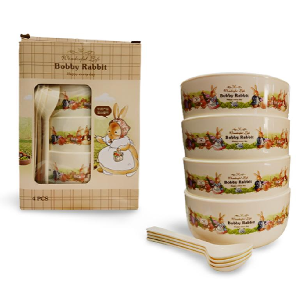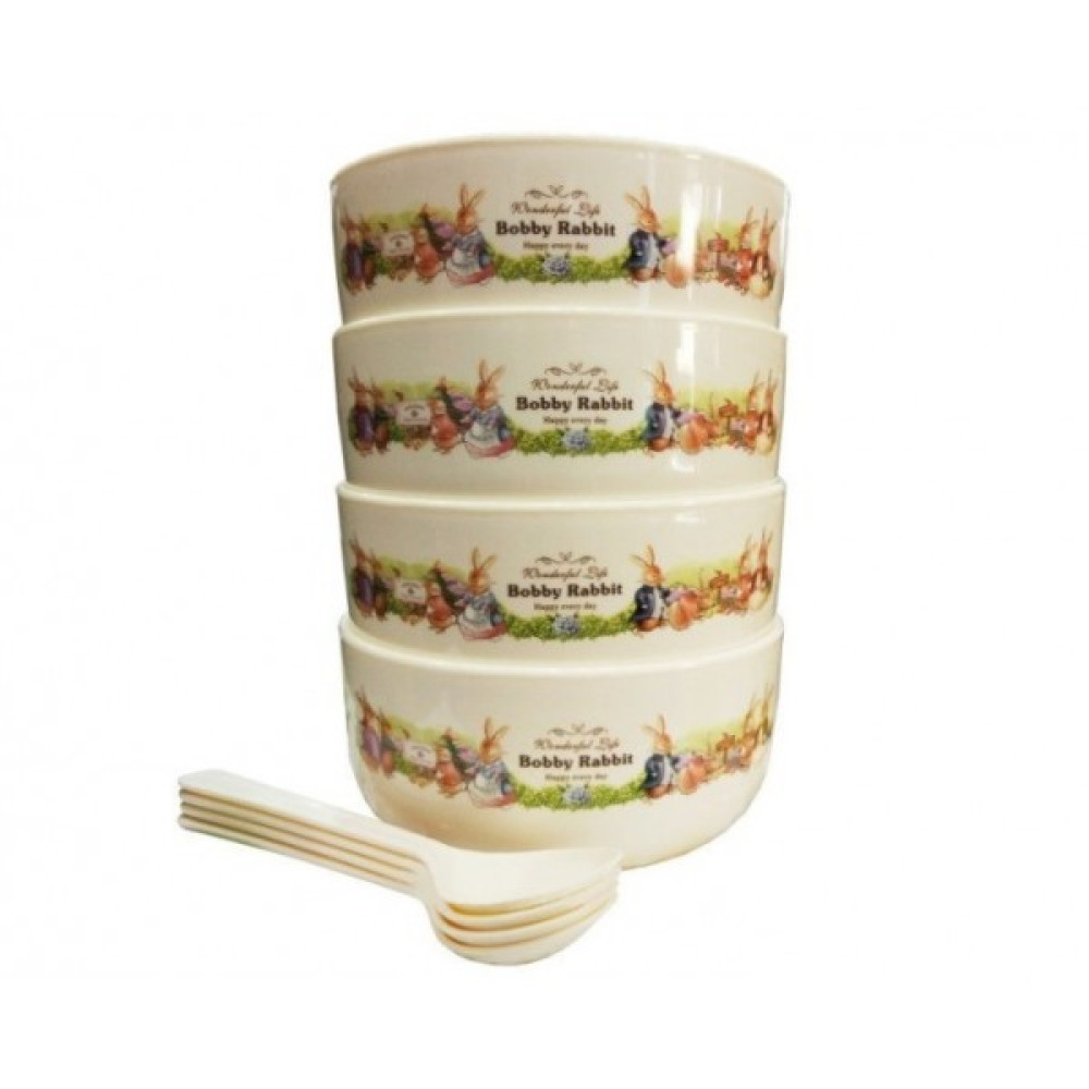 Детский набор посуды Bobby Rabbit, 4 тарелки с ложечками