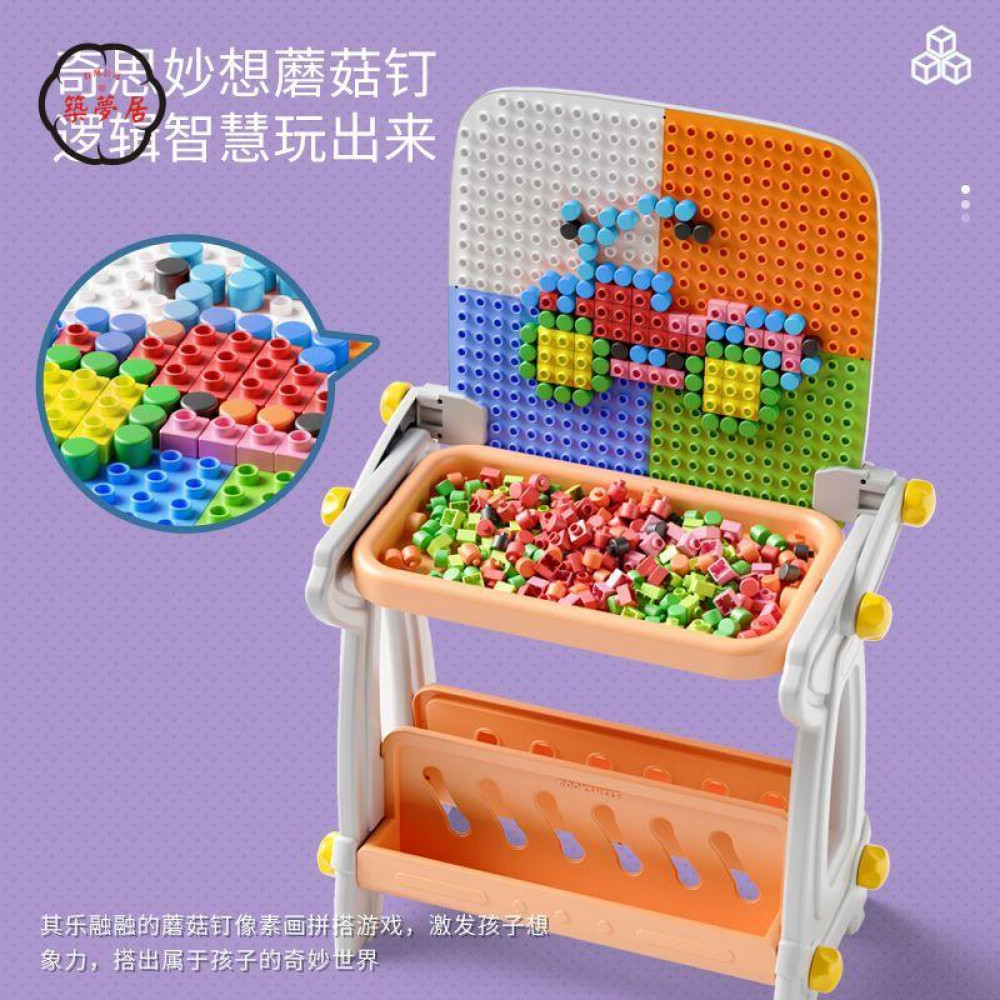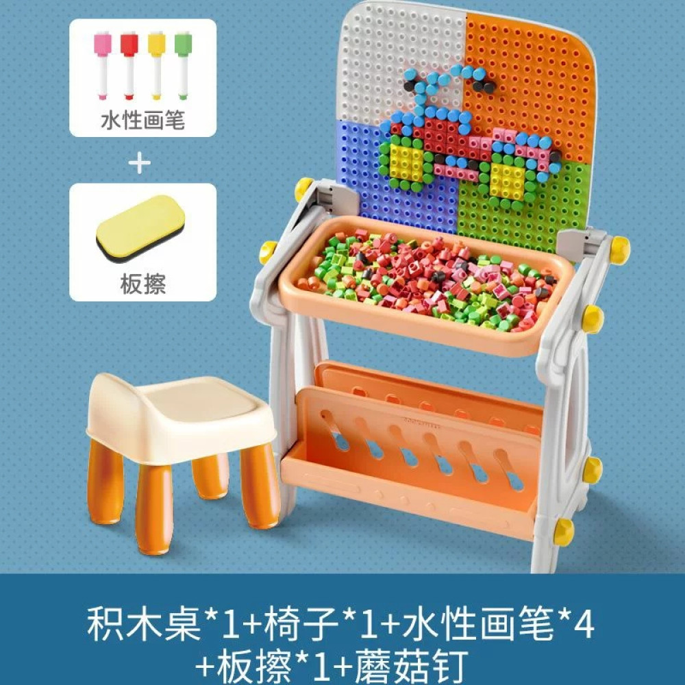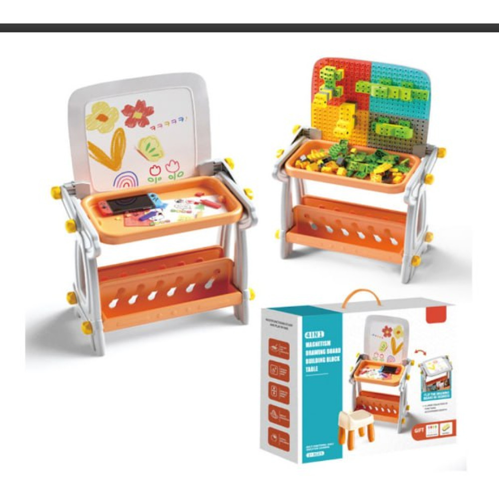 Детский стол B8020 магнитная доска для рисования конструктор из блоков • Развивающий набор стол мольберт магнитная доска и конструктор 4 в 1