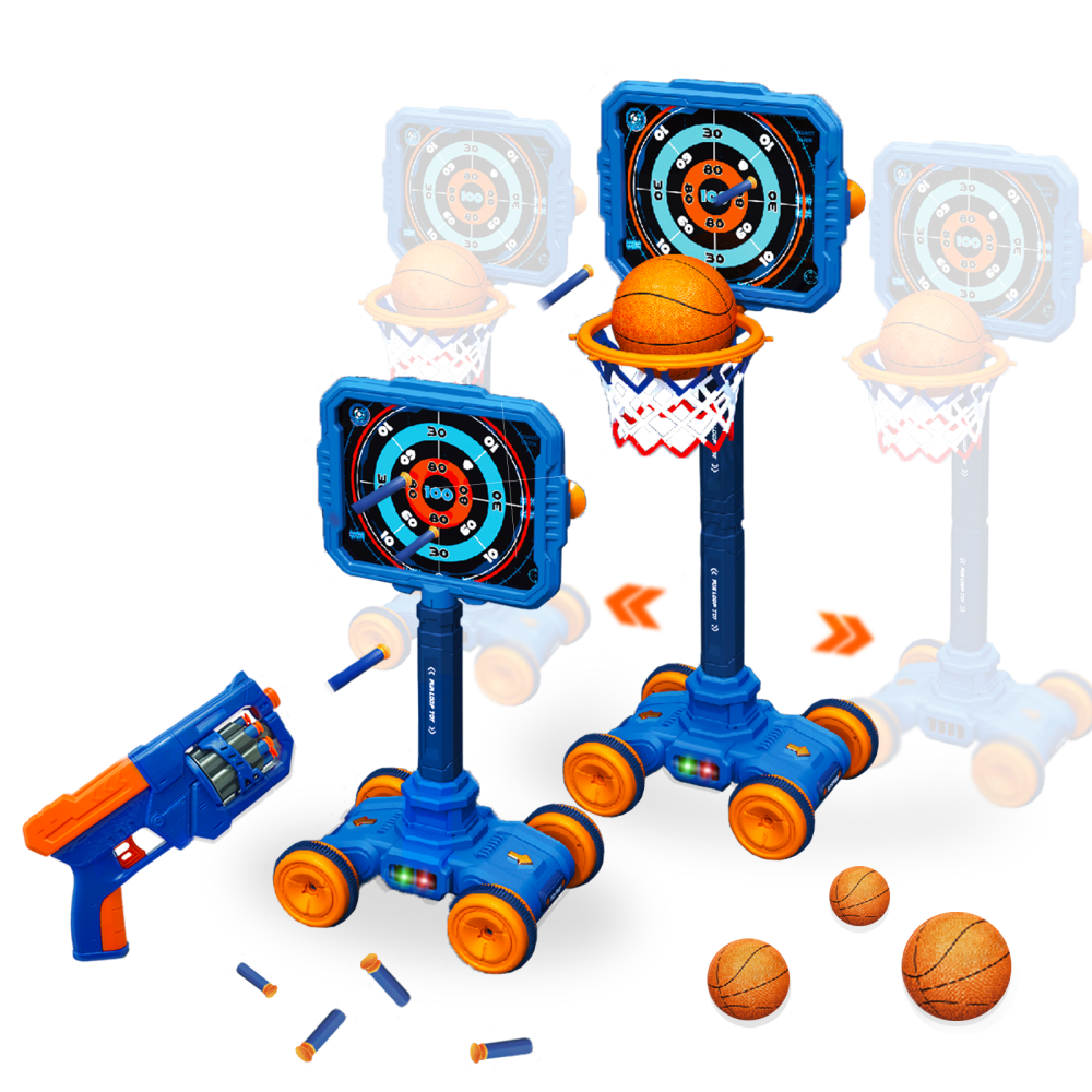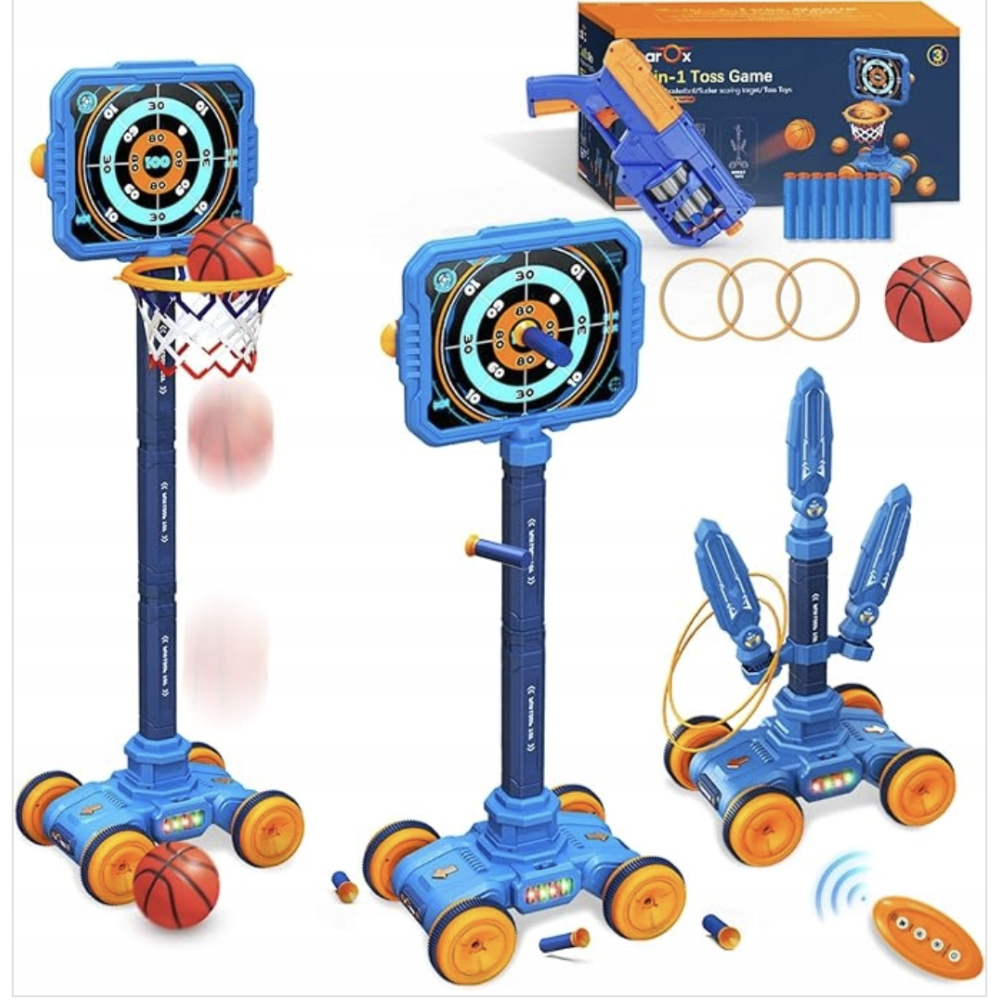 • 3 в 1: пистолет со щитом, игровые кольца и баскетбольное кольцо