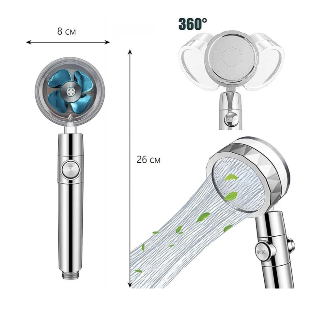 Заказывайте Душевая насадка турболейка 360° с вентилятором ∙ Турбо-лейка 360° для с вентилятором для душа на нашем сайте!