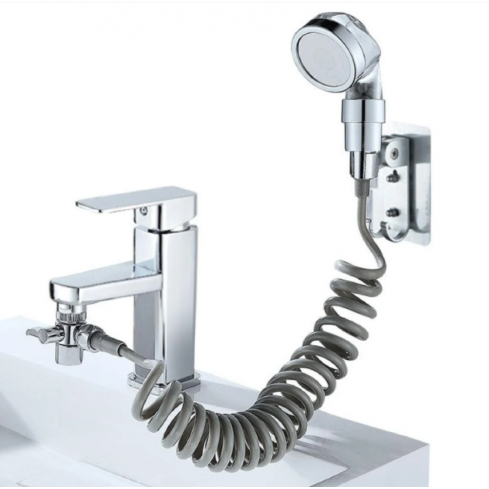 Комплект для мойки - поставляется с набором ручной насадки для душа, переключающего клапана, шланга и кронштейна для держателя насадки для душа. Этот набор универсален и идеально подходит для мытья волос, купания домашних животных и других функций для эффективной работы. Соединяется с ванной или раковиной для легкой мойки с помощью кронштейна для держателя насадки.