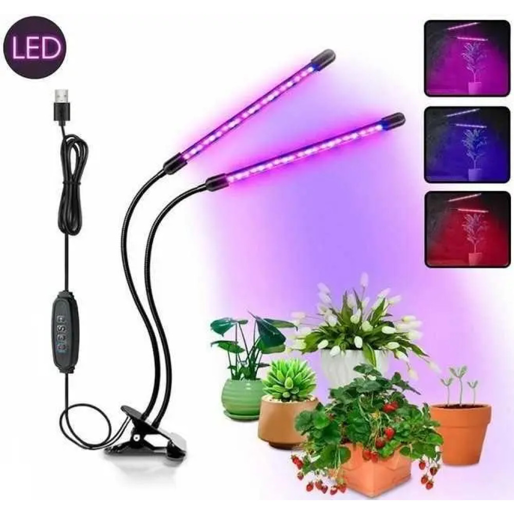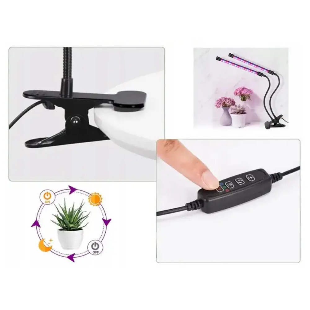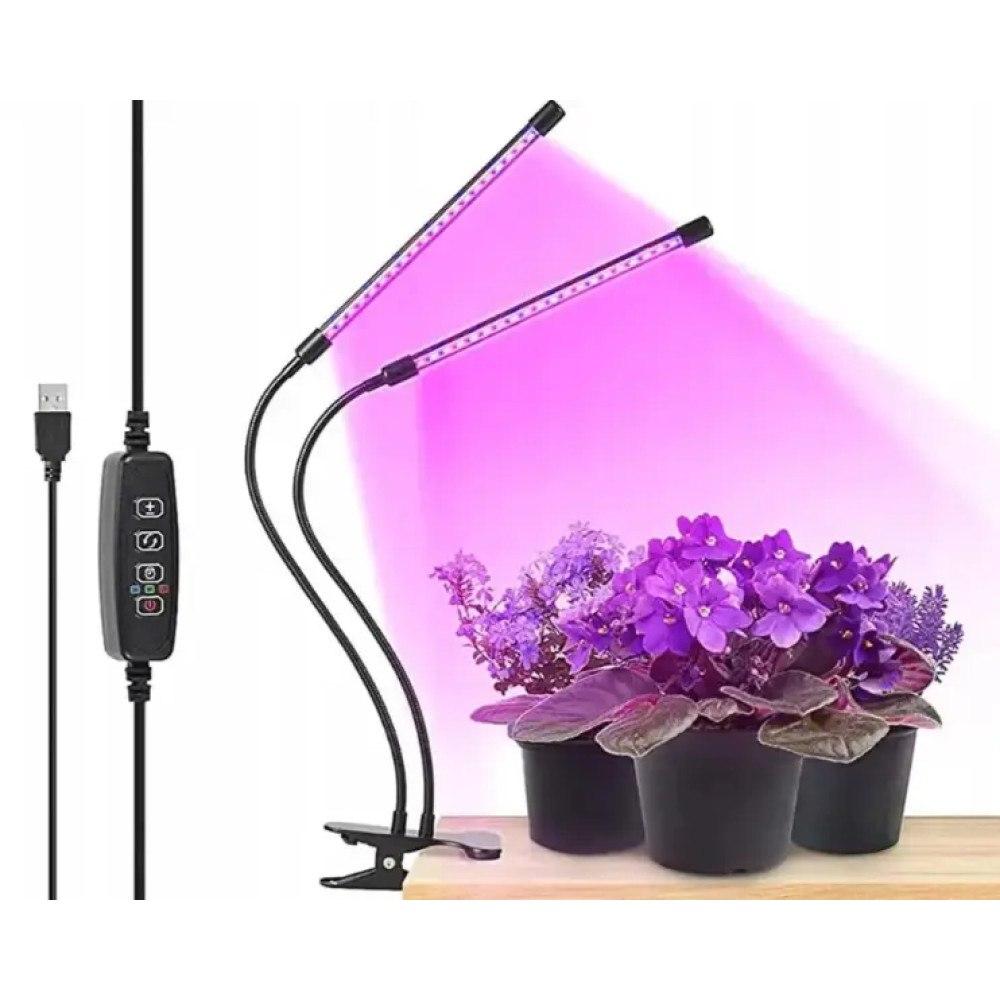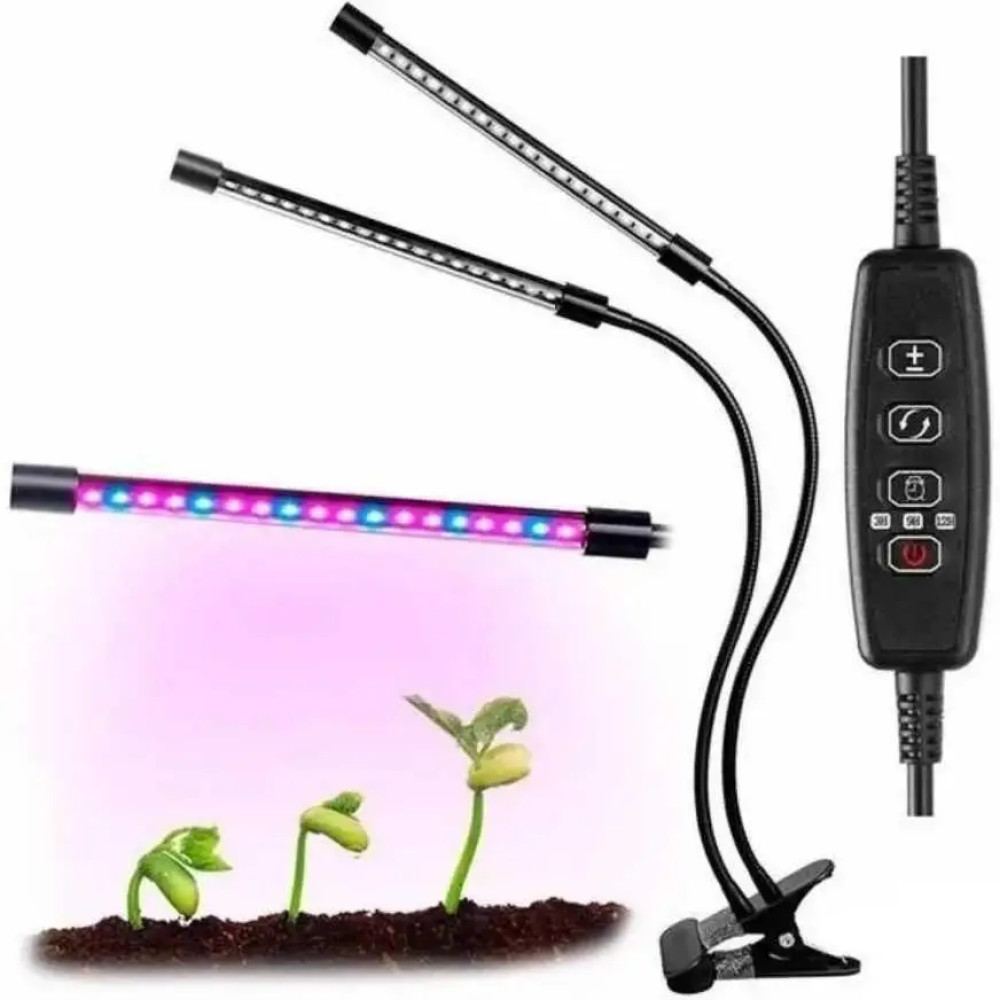Двойная, гибкая фитолампа для растений с таймером ∙ Регулируемая яркость ∙ 30 вТ