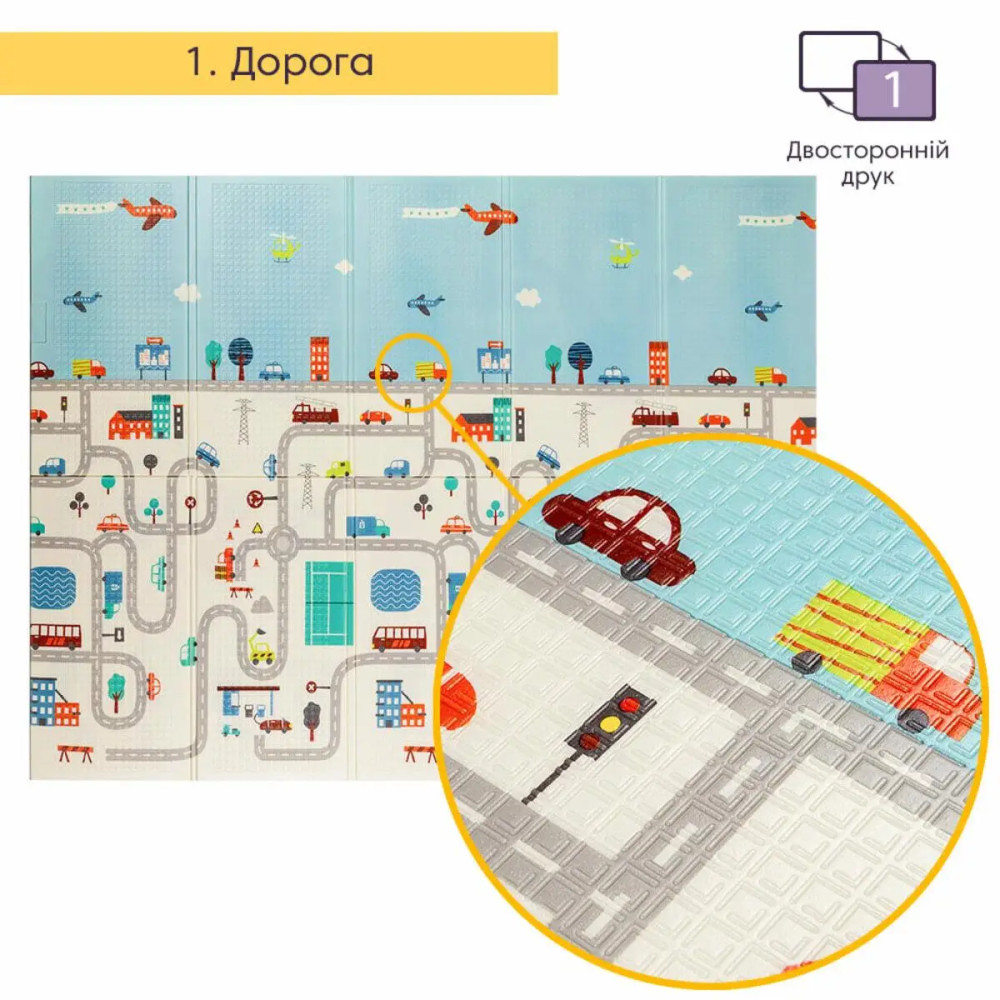 Детский развивающий игровой коврик раскладной 150*180 см (Дорога) — безопасная, комфортная, стильная и практичная зона для игр и развития ребенка!