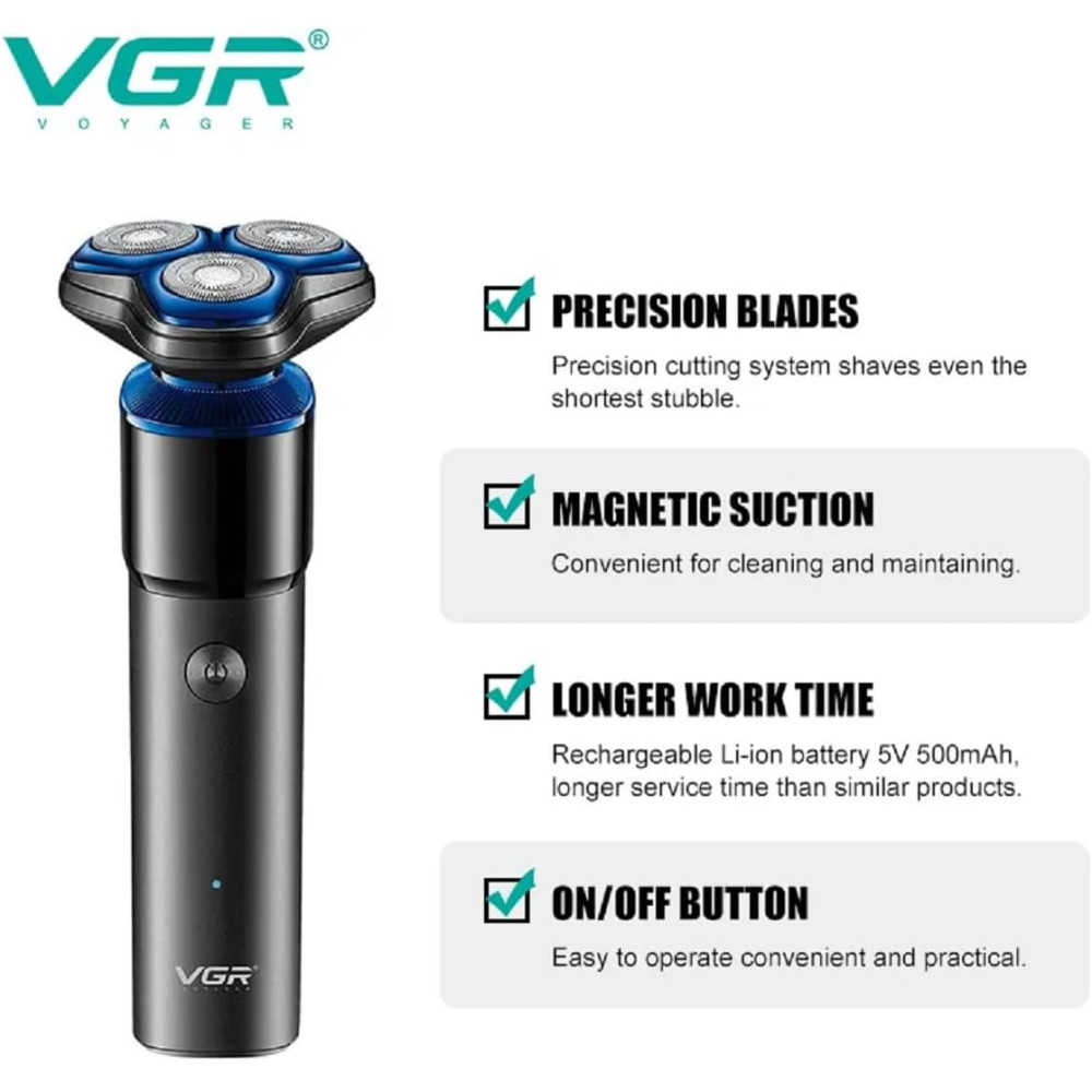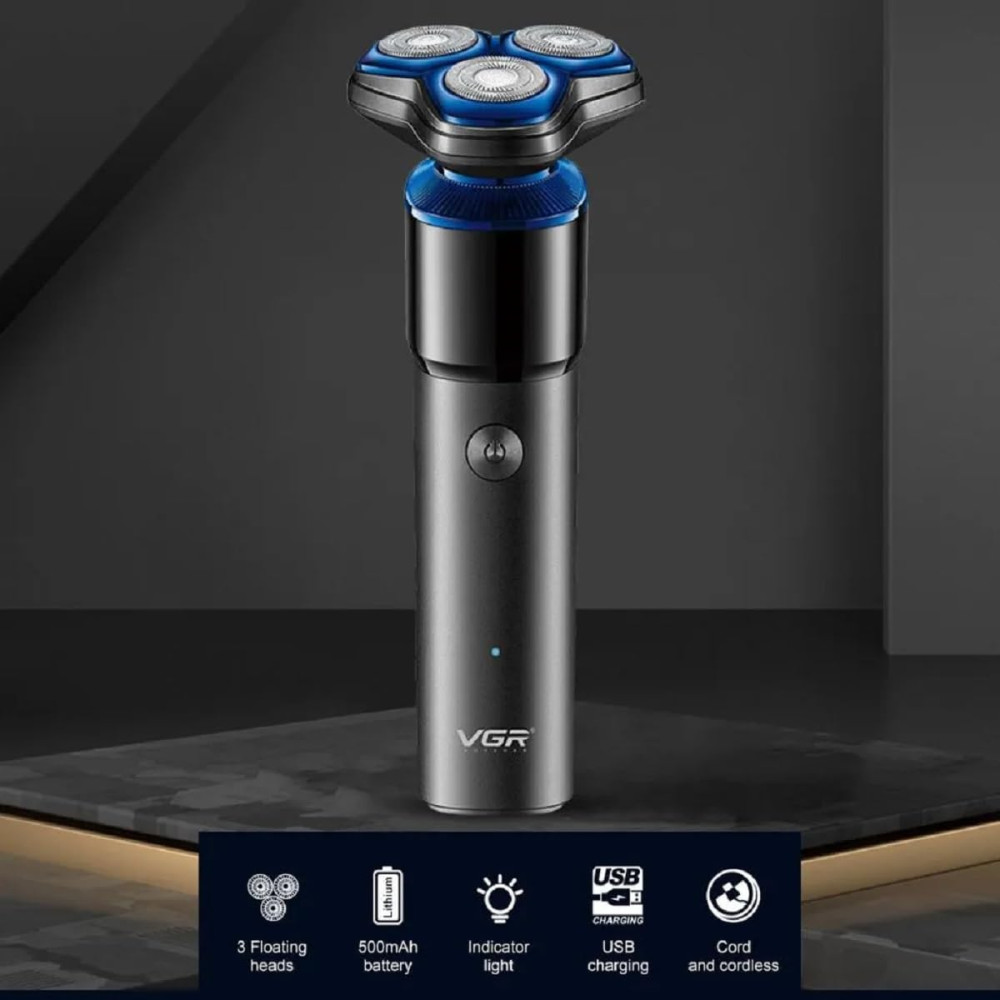 Электробритва VGR V-325 — современная роторная модель, созданная для комфортного и эффективного ежедневного бритья. Благодаря трём плавающим 3D-головкам устройство точно повторяет контуры лица, обеспечивая чистый результат без лишнего давления на кожу