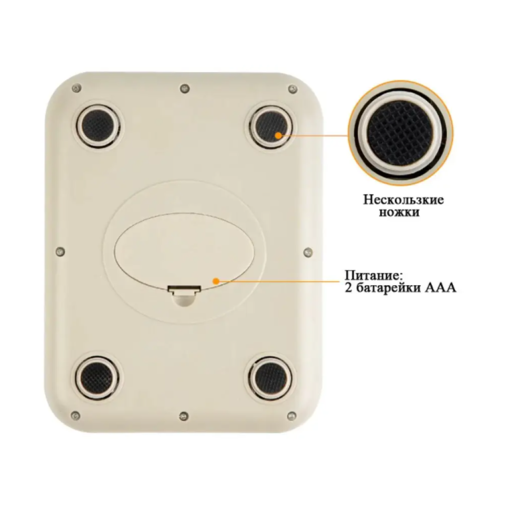 Верхняя часть весов сделана из нержавеющей стали, нижняя часть корпуса выполнена из пластика. Ножки весов прорезиненные. Это позволяет весам не скользить по поверхностям.