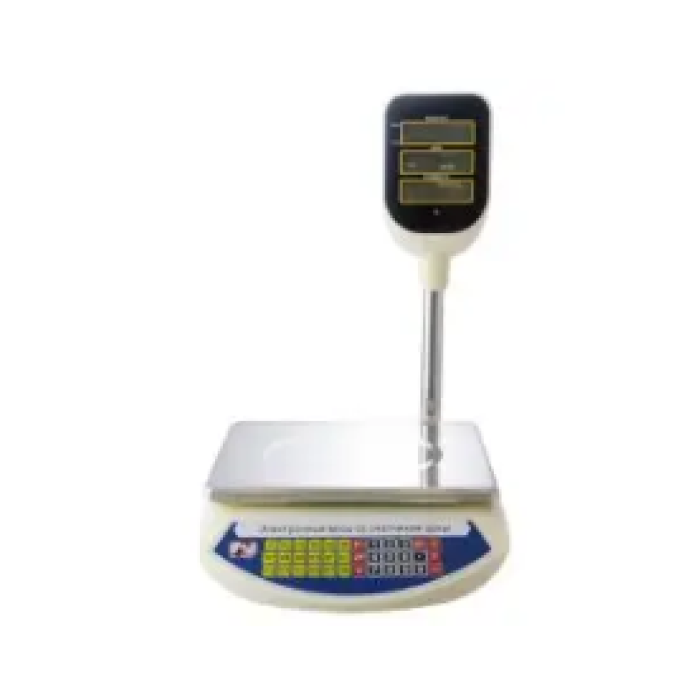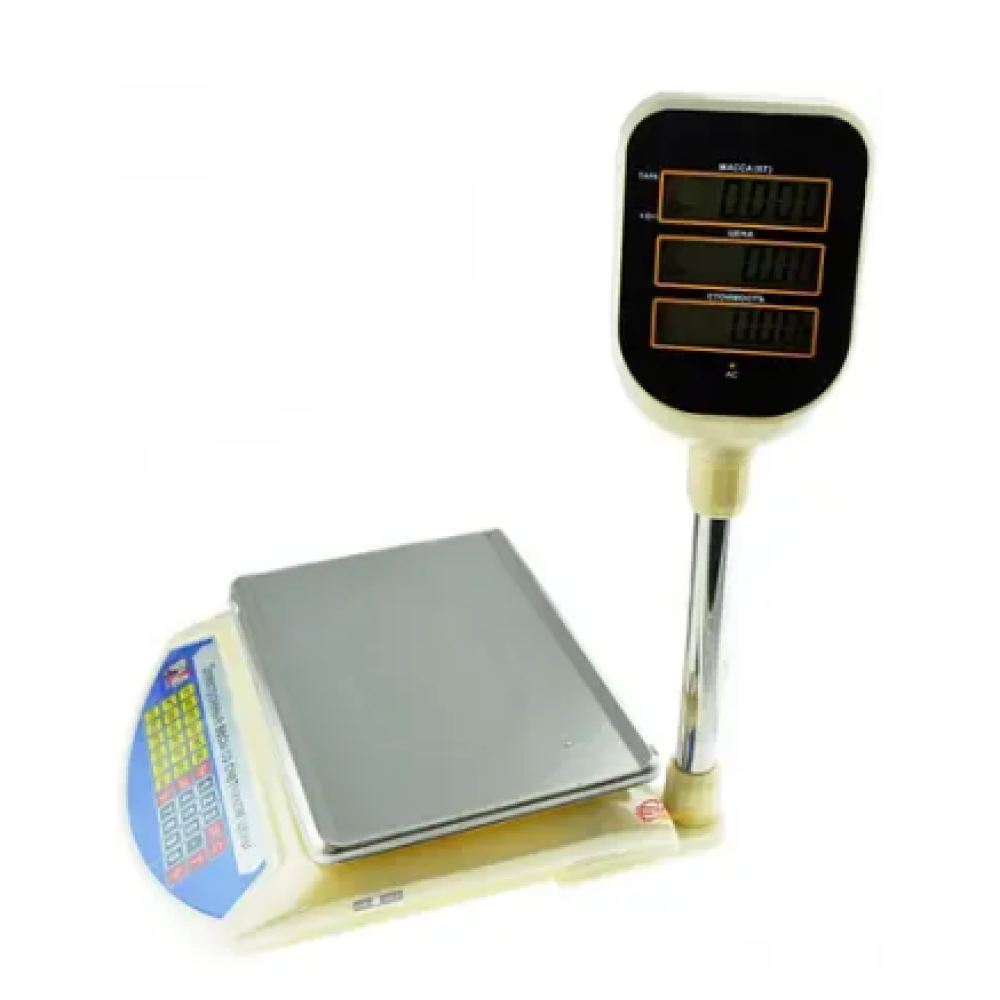 Электронные торговые весы Promotec PM 5052 с отдельным табло на стойке (двухсторонний ЖК-дисплей с подсветкой покупатель-продавец) пределом взвешивания до 40 кг.