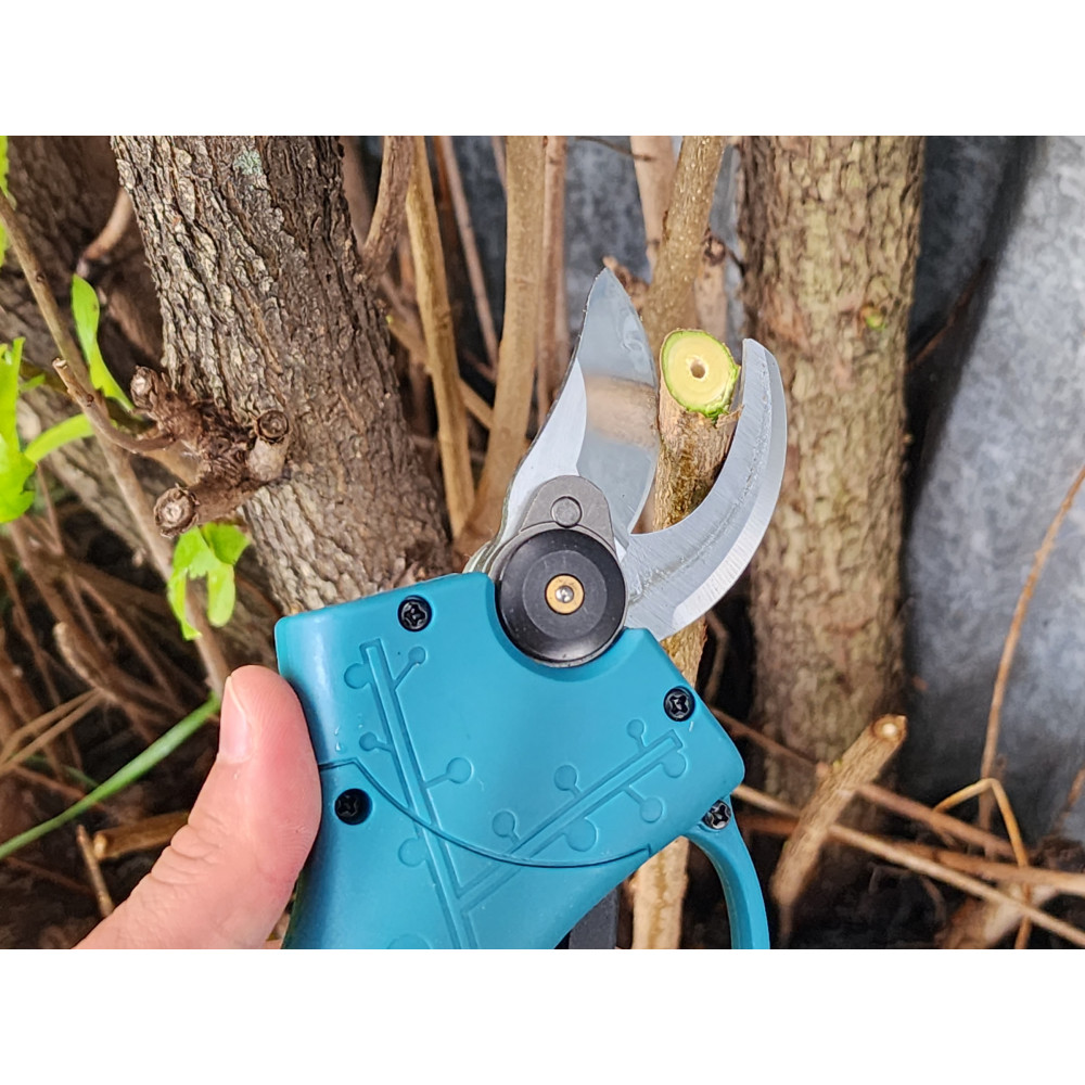 Быстрая и точная обрезка: Секатор оснащен мощным мотором и острыми лезвиями, что позволяет легко обрезать ветки до 25 мм диаметром с высокой точностью. Вы сможете производить чистую и ровную обрезку каждый раз.