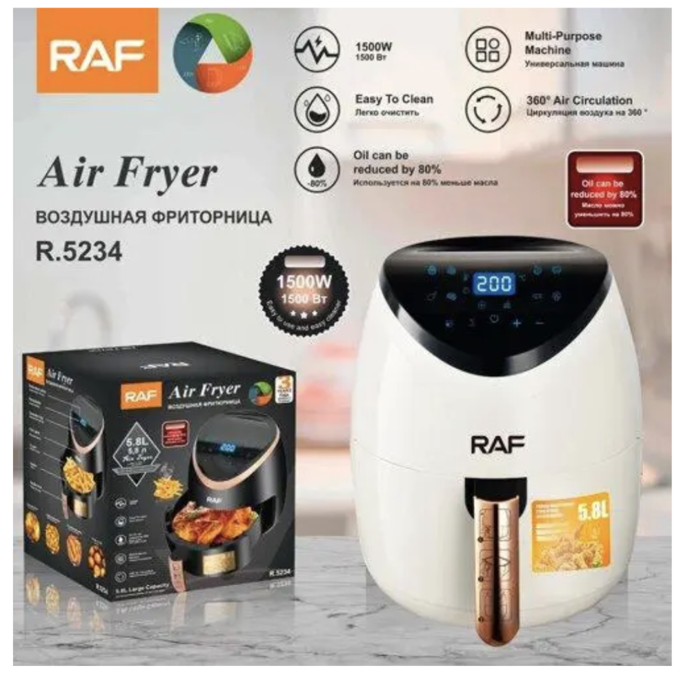 Заказывайте Электрическая фритюрница RAF R.5234W, 5,8 л ∙ Аэро-фритюрница без масла RAF R.5234W — здоровое и удобное приготовление пищи на нашем сайте!
