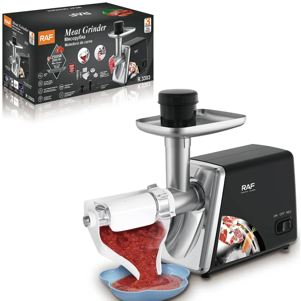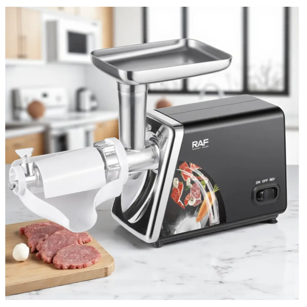 Электрическая мясорубка RAF R.3383 — современный и мощный кухонный прибор, который станет вашим надёжным помощником в приготовлении фарша, домашних колбас, овощных смесей и даже томатного сока